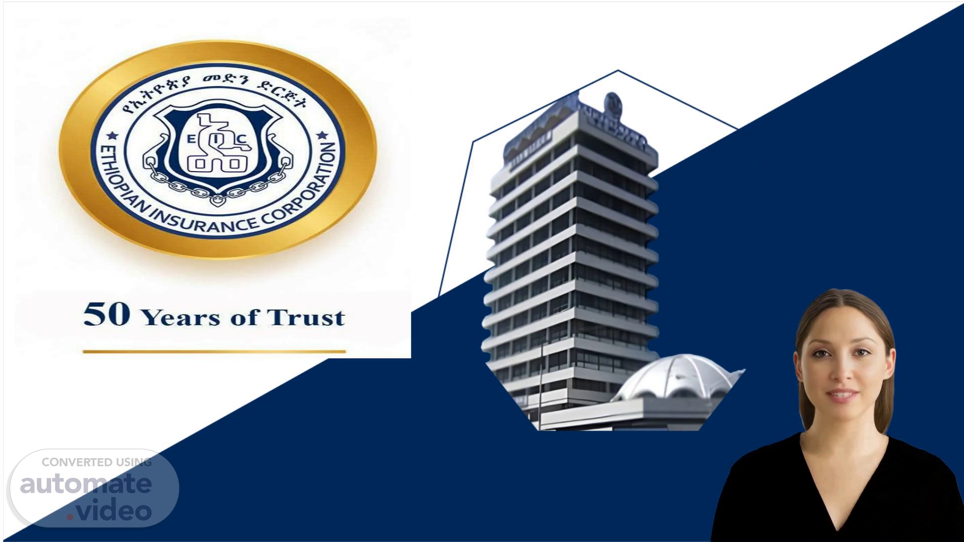 [Virtual Presenter] The Ethiopian Insurance Corporation was founded in 1969 as an independent entity. Initially, it focused on providing life insurance services to the public. Over time, the corporation expanded its scope to include other types of insurance such as property and liability insurance. In addition to these traditional forms of insurance, the corporation has also introduced new products and services that cater to modern needs. These innovative offerings have helped the corporation maintain its position as a leading provider of insurance solutions in Ethiopia..