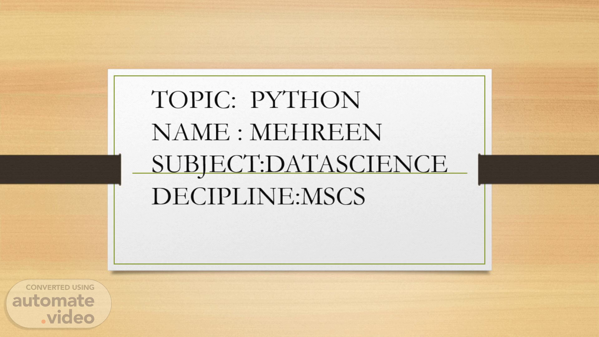 TOPIC: PYTHON NAME : MEHREEN SUBJECT:DATASCIENCE DECIPLINE:MSCS.