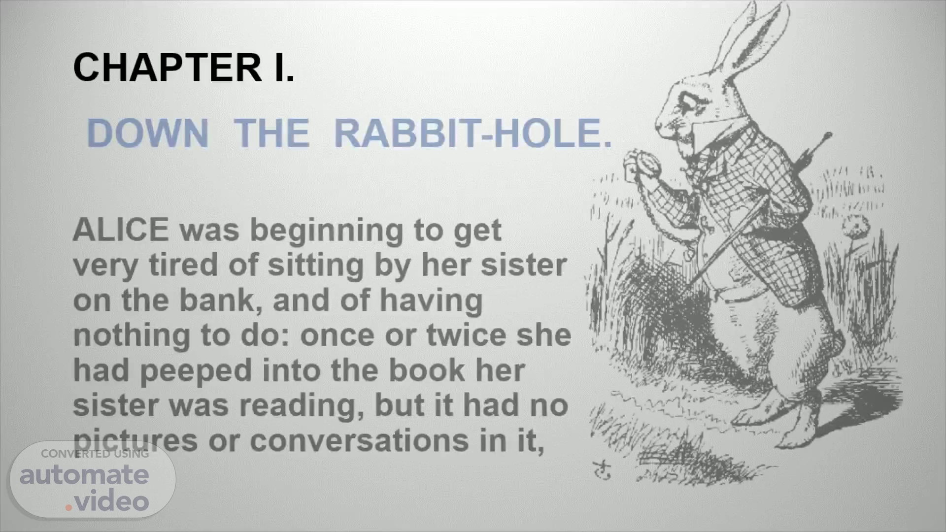 [Audio] " and what is the use of a book," thought Alice, " without pictures or conversations ?" So she was considering in her own mind, (as well as she could, for the hot day made her feel very sleepy and stupid,) whether the pleasure of making a daisy-chain would be worth the trouble of getting up and picking the daisies, when suddenly a white rabbit with pink eyes ran close by her..