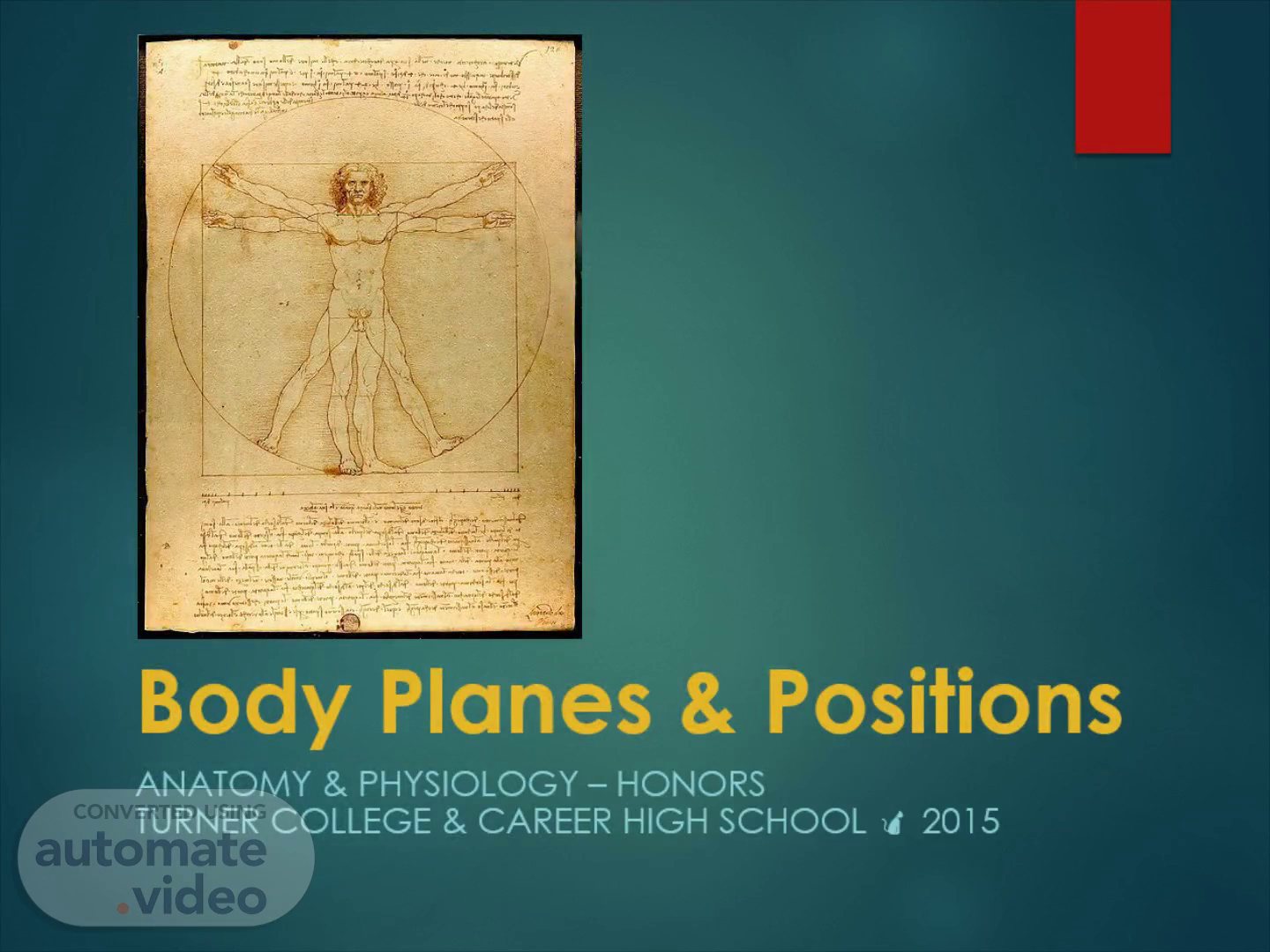 34.1. Body Planes & Positions. Anatomy & Physiology – Honors Turner College & Career High School  2015.