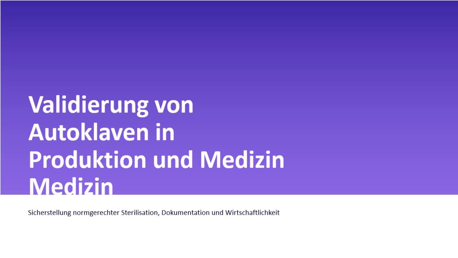 [Audio] In dieser Präsentation gehen wir auf häufige Fragen zur Autoklav-Validierung ein. Zunächst zur Pflicht der Validierung: Es ist wichtig, die normgerechte und sichere Sterilisation sicherzustellen, und zwar gemäß den Herstellervorgaben sowie den gesetzlichen Richtlinien. Bezüglich der Wiederholungsintervalle wird empfohlen, die Validierung alle 24 Monate zu wiederholen, um die Qualität dauerhaft zu gewährleisten. Die Kosten für die Validierung können je nach Anbieter, Umfang der Leistung und Größe des Geräts variieren. Daher ist es sinnvoll, verschiedene Angebote zu vergleichen. Die Leistungsbeurteilung umfasst eine Funktionsprüfung, die Einhaltung der DIN SPEC 58929 sowie die Bewertung der Sterilisationsergebnisse. Als Empfehlungen sollten die Herstellerangaben stets berücksichtigt werden. Zudem ist die Auswahl validierter Verfahren und eine regelmäßige Überprüfung der Prozesse wichtig. Die Durchführung der Validierung beinhaltet die Erstvalidierung, regelmäßige Leistungsbeurteilungen und eine umfassende Dokumentation aller Schritte..