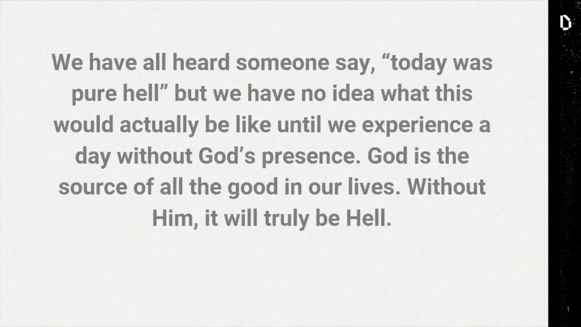 [Virtual Presenter] We have all heard someone say, “today was pure hell” but we have no idea what this would actually be like until we experience a day without God’s presence. God is the source of all the good in our lives. Without Him, it will truly be Hell..
