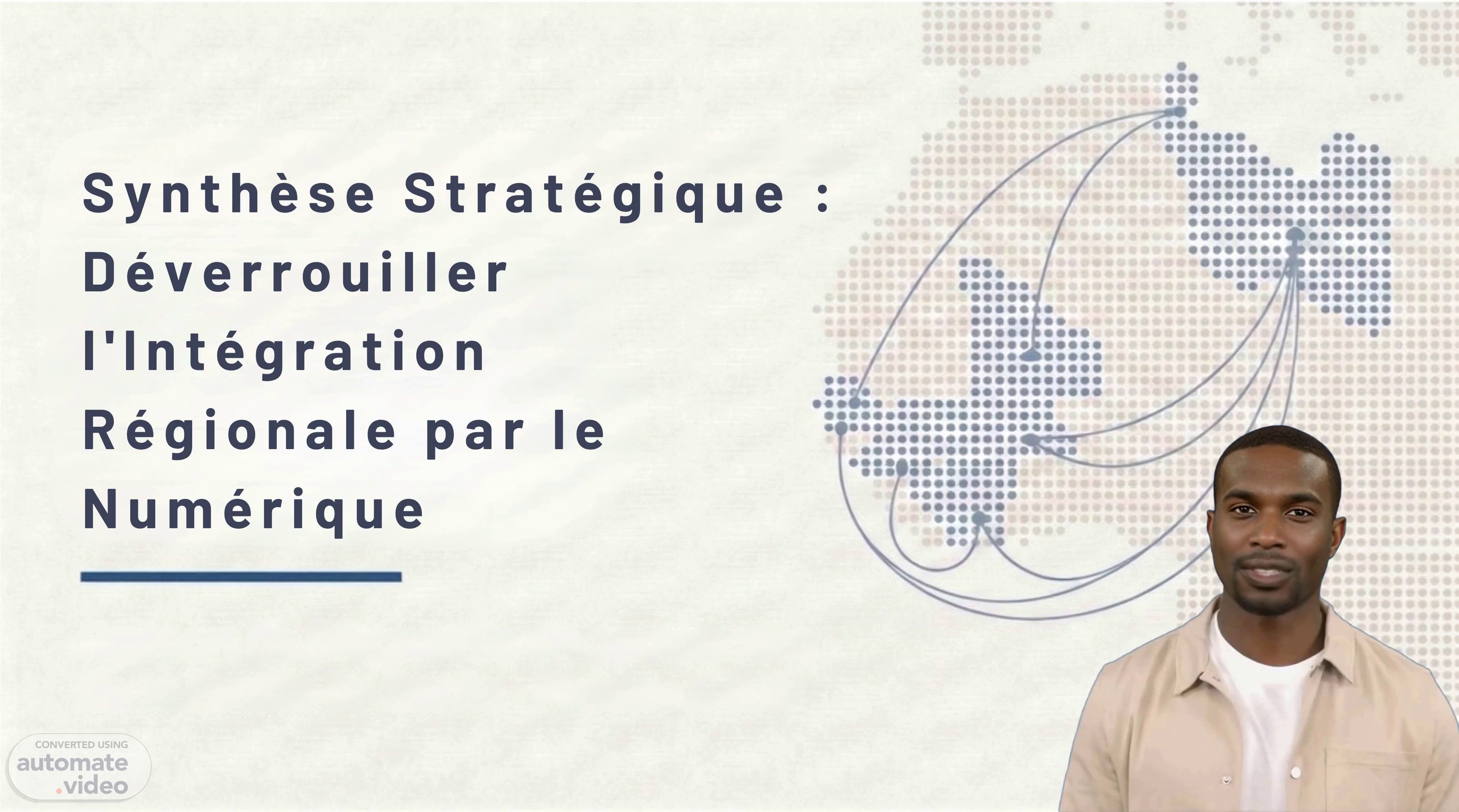 [Audio] La présente réunion s'inscrit dans le cadre d'une discussion sur l'importance de l'intégration régionale pour le développement et la survie des sociétés. La fragmentation géoéconomique est un enjeu majeur dans le monde actuel, où les échanges commerciaux sont de plus en plus complexes et interconnectés. Cela devient encore plus crucial au vu de la volatilité des matières premières et des chocs exogènes qui peuvent rapidement affecter nos économies. Il est donc primordial de travailler ensemble pour déverrouiller l'intégration régionale et en faire un moteur de croissance pour nos pays. La synthèse stratégique pour déverrouiller l'intégration régionale par le numérique est un sujet clé de notre discussion. Nous allons examiner les différentes phases à suivre pour y parvenir, dans le cadre du rapport de diagnostic que nous avons réalisé. L'intégration régionale est un impératif de survie pour nos sociétés. Nous sommes convaincus que par une approche stratégique et une utilisation optimale des outils numériques, nous pouvons surmonter les défis qui se présentent à nous..