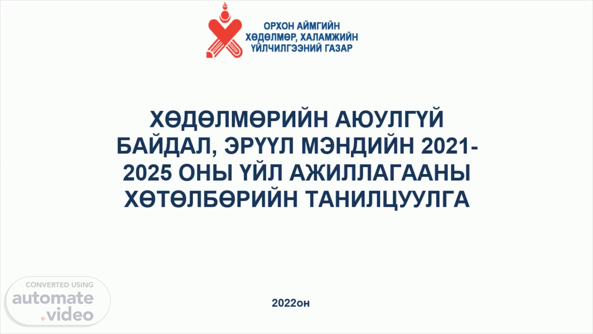 ХӨДӨЛМӨРИЙН АЮУЛГҮЙ БАЙДАЛ, ЭРҮҮЛ МЭНДИЙН 2021-2025 ОНЫ ҮЙЛ АЖИЛЛАГААНЫ ХӨТӨЛБӨРИЙН ТАНИЛЦУУЛГА