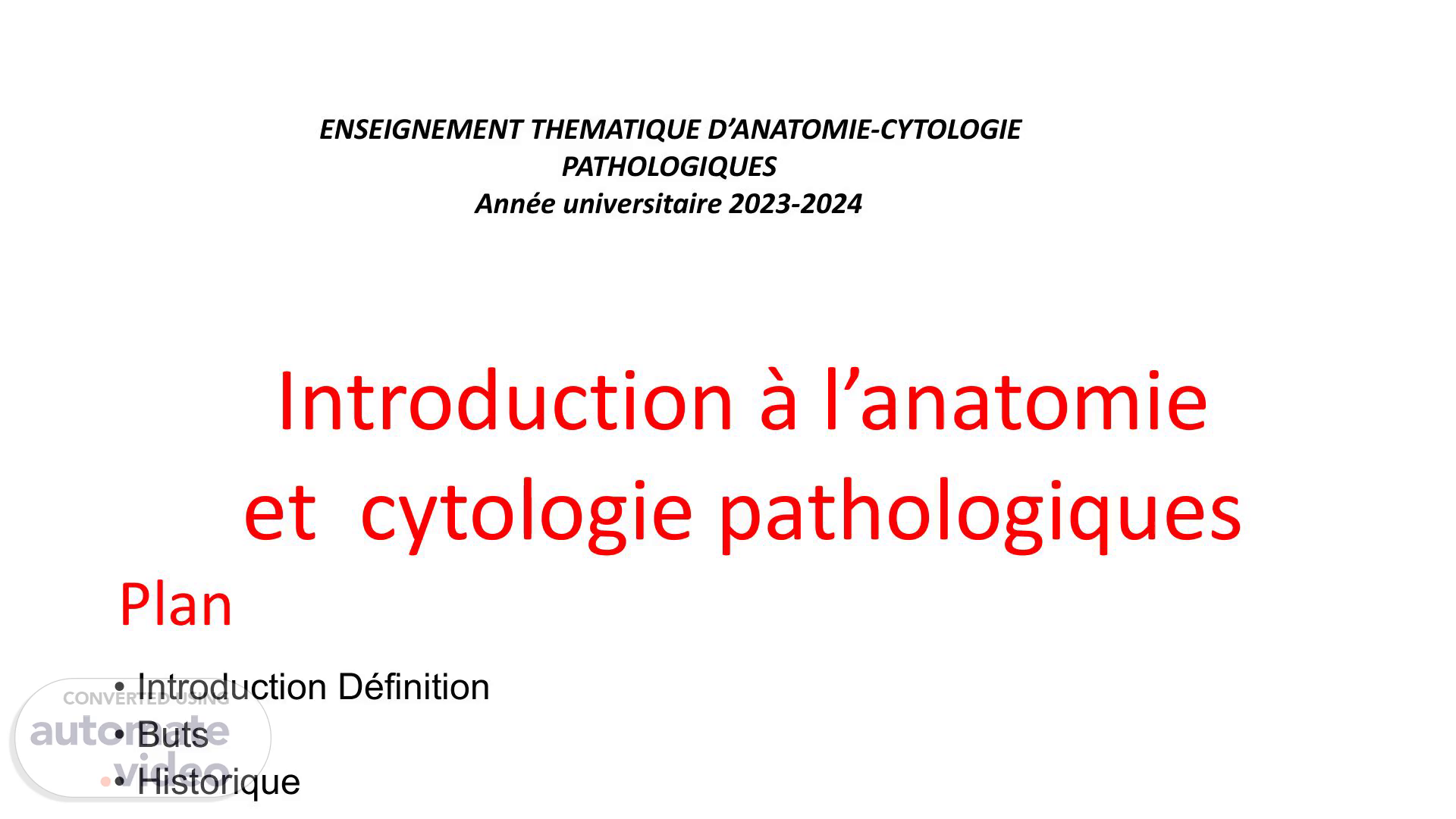 [Audio] ENSEIGNEMENT THEMATIQUE D'ANATOMIE-CYTOLOGIE PATHOLOGIQUES Année universitaire 2023-2024 Introduction à l'anatomie et cytologie pathologiques Plan Introduction Définition Buts Historique.