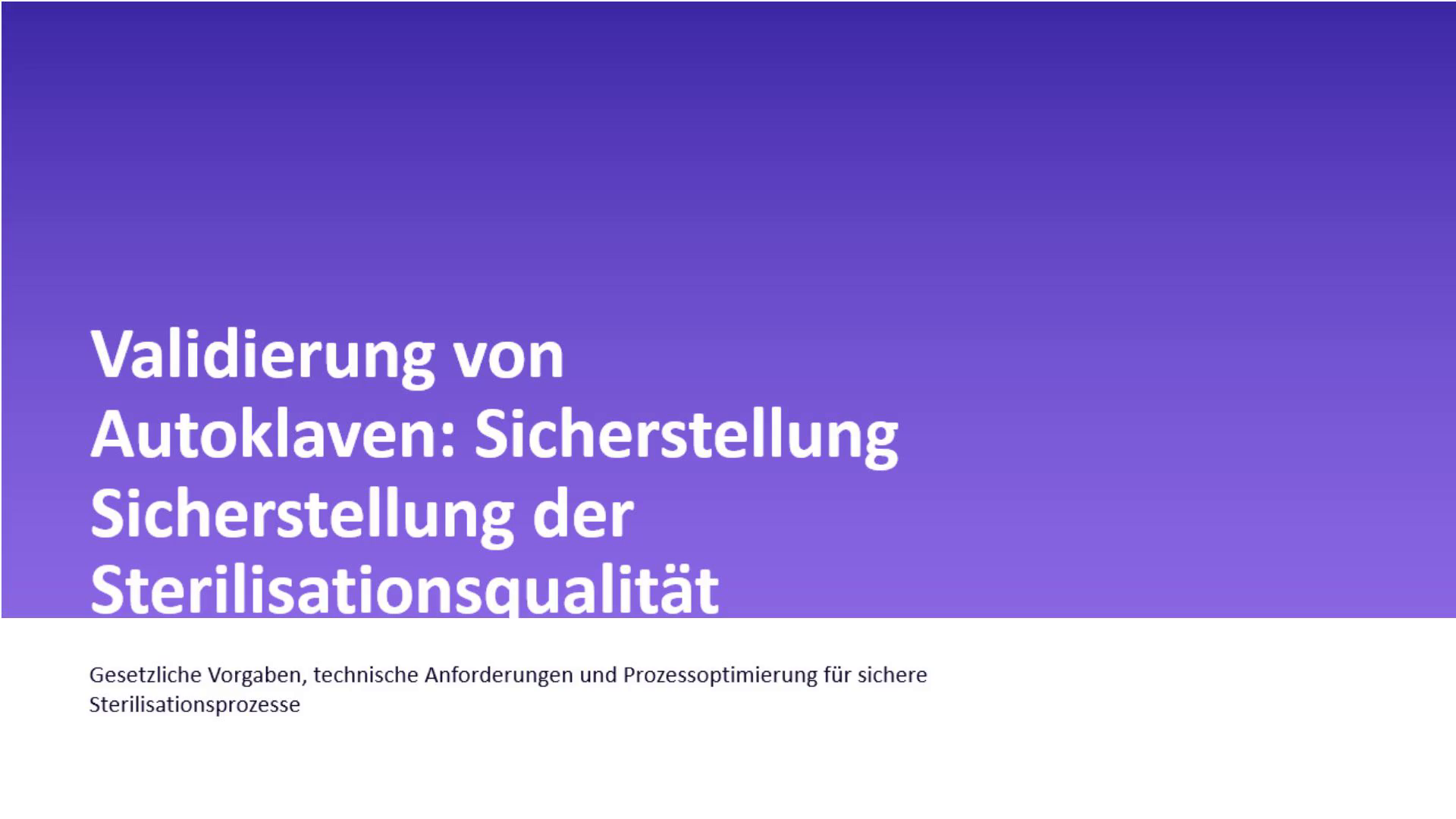 [Audio] In dieser Präsentation beantworten wir häufige Fragen zur Validierung von Autoklaven. Zunächst zur Erstvalidierung: Sie überprüft zum ersten Mal die Funktionalität und Effektivität des Autoklaven gemäß den Herstellerangaben und nationalen Normen wie der DIN Spec 58929. Zur Revalidierung: Diese sollte mindestens einmal jährlich oder nach wesentlichen Änderungen im Prozess durchgeführt werden, um die kontinuierliche Wirksamkeit sicherzustellen. Wichtige Normen für die Validierung sind die DIN EN ISO 17665-1 sowie nationale Vorgaben wie die DIN Spec 58929. Die Validierung umfasst mehrere Schritte, darunter die Erstvalidierung, die Erstellung von Prüfplänen für die Installations- und Funktionsqualifikation (IQ und OQ) sowie die Leistungsbeurteilung der Sterilisationsgeräte. Schließlich wird das Sterilisationsergebnis durch den Einsatz physikalischer, chemischer und biologischer Indikatoren überprüft, die die Wirksamkeit des Sterilisationsprozesses bestätigen..