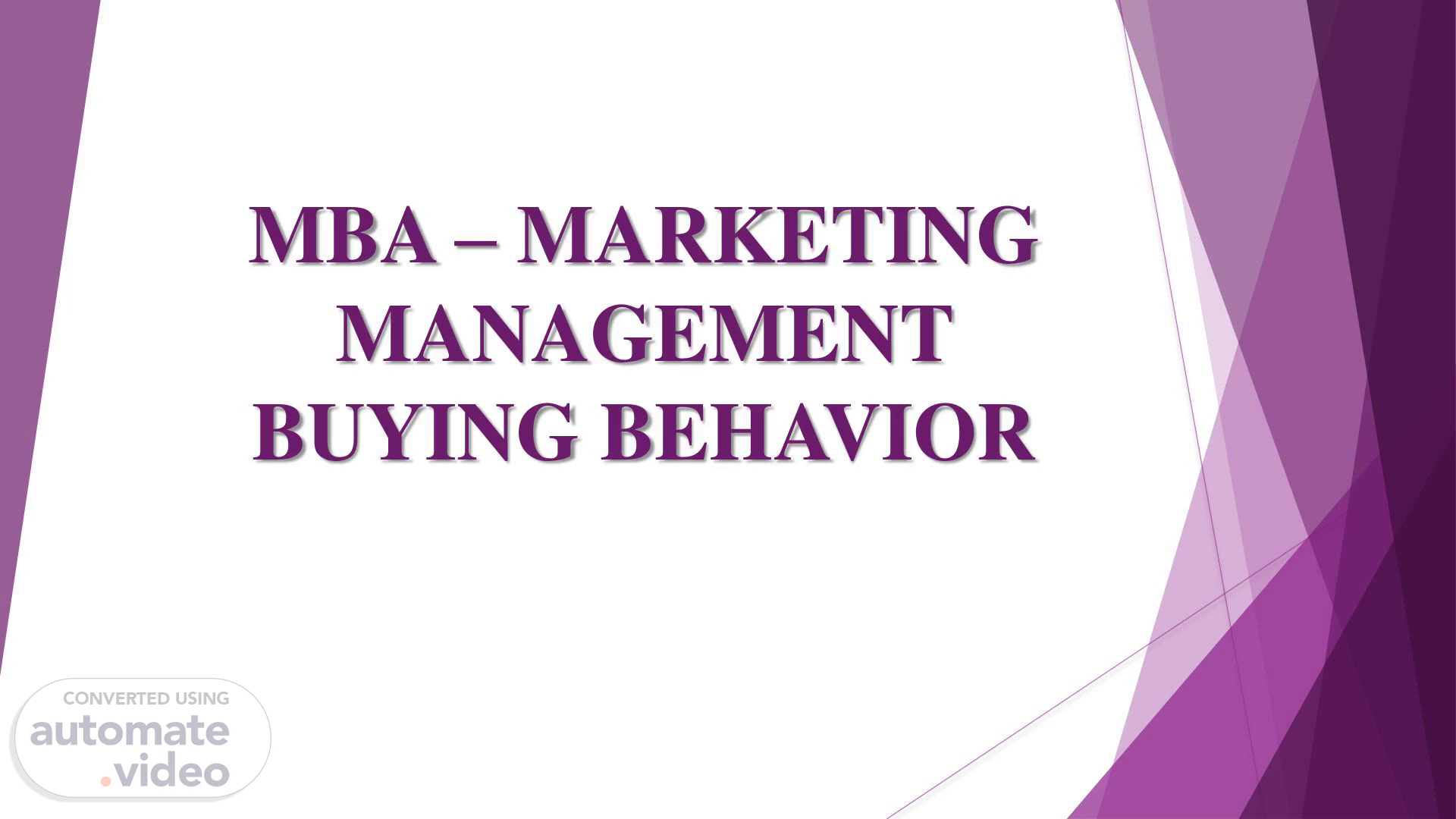 [Audio] Welcome to MBA – MARKETING MANAGEMENT BUYING BEHAVIOR.