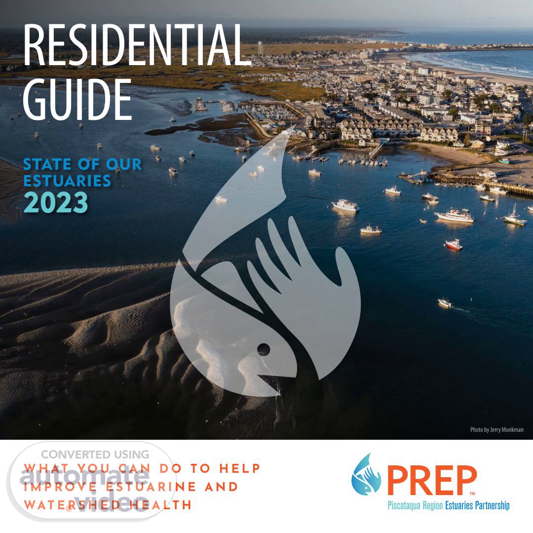 From the headwaters in Wakefield, New Hampshire and Acton, Maine to the coast, the Piscataqua Region Watershed encompasses 1,086 square miles, 52 towns, two beautiful estuar- ies, and more than 400,000 residents. Since 1995, the Piscataqua Region Estuaries Partnership (PREP), as part of the United States Environmental Protection Agency’s National Estuary Program, has been committed to moni- toring, protecting, and preserving these nationally signifcant lands and waters. Every fve years we release the State of Our Estuaries report to provide decision- makers, communities, and residents like you with a comprehensive look at the health of our region’s estuaries – Great Bay and Hampton-Seabrook. The 2023 State of Our Estuaries report sends a clear message: the challeng- es we face are signifcant and so is our power to bring about positive change. Fortunately, there are simple actions for all of us who live, work, and play in the region can take to improve water quality and ensure healthy com- munities. This Residential Guide is a com- panion document to the 2023 State of Our Estuaries report. It contains specifc actions you can take at home, with your family, in your community, and regionally to become a Clean Water Champion! It even includes a fold-out poster that you can hang on your fridge, wall, or of- fce as a quick reference for what you can do to help our estuaries! PREP is your partner in clean water solutions and go-to resource for the latest data on the estuarine and watershed health. About This Guide PREP GOAL Encourage all who live, work, and play in the Piscataqua Region Watershed to take actions to help protect and preserve the places we love. Photo by Melissa Paly Photo by Emily Lord.