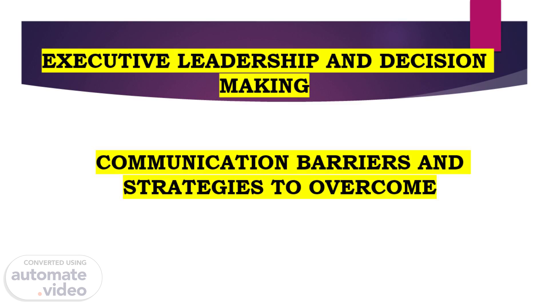 [Audio] In conclusion, By recognizing these barriers and implementing effective strategies, executive leaders can enhance their decision-making processes and improve overall communication within their organizations. Thank you once again and have a great day..