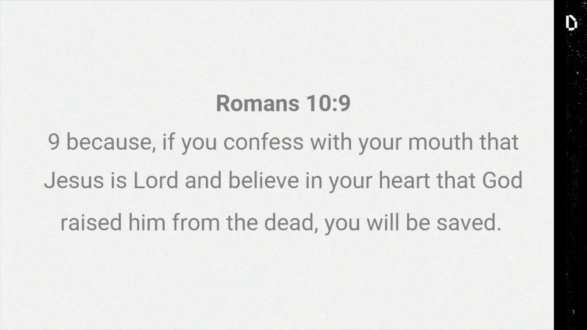 [Virtual Presenter] Romans 10:9 9 because, if you confess with your mouth that Jesus is Lord and believe in your heart that God raised him from the dead, you will be saved..