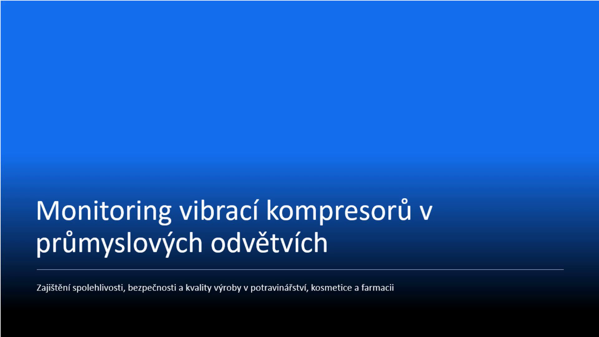 [Audio] Monitorování vibrací je zásadní, protože vibrace přímo ovlivňují spolehlivost a životnost kompresorů. Nadměrné vibrace mohou způsobit mechanické poškození klíčových komponent, jako jsou ložiska, hřídele nebo těsnění, což vede k nákladným opravám a neplánovaným odstávkám. Pravidelný monitoring vibrací umožňuje včasnou identifikaci problémů, čímž se snižuje riziko havárií a prodlužuje životnost zařízení. Zvláště v citlivých průmyslových odvětvích, jako je potravinářský, kosmetický a farmaceutický průmysl, je důležité zajistit stabilní a bezpečný provoz, aby nedošlo k ohrožení kvality výrobků..
