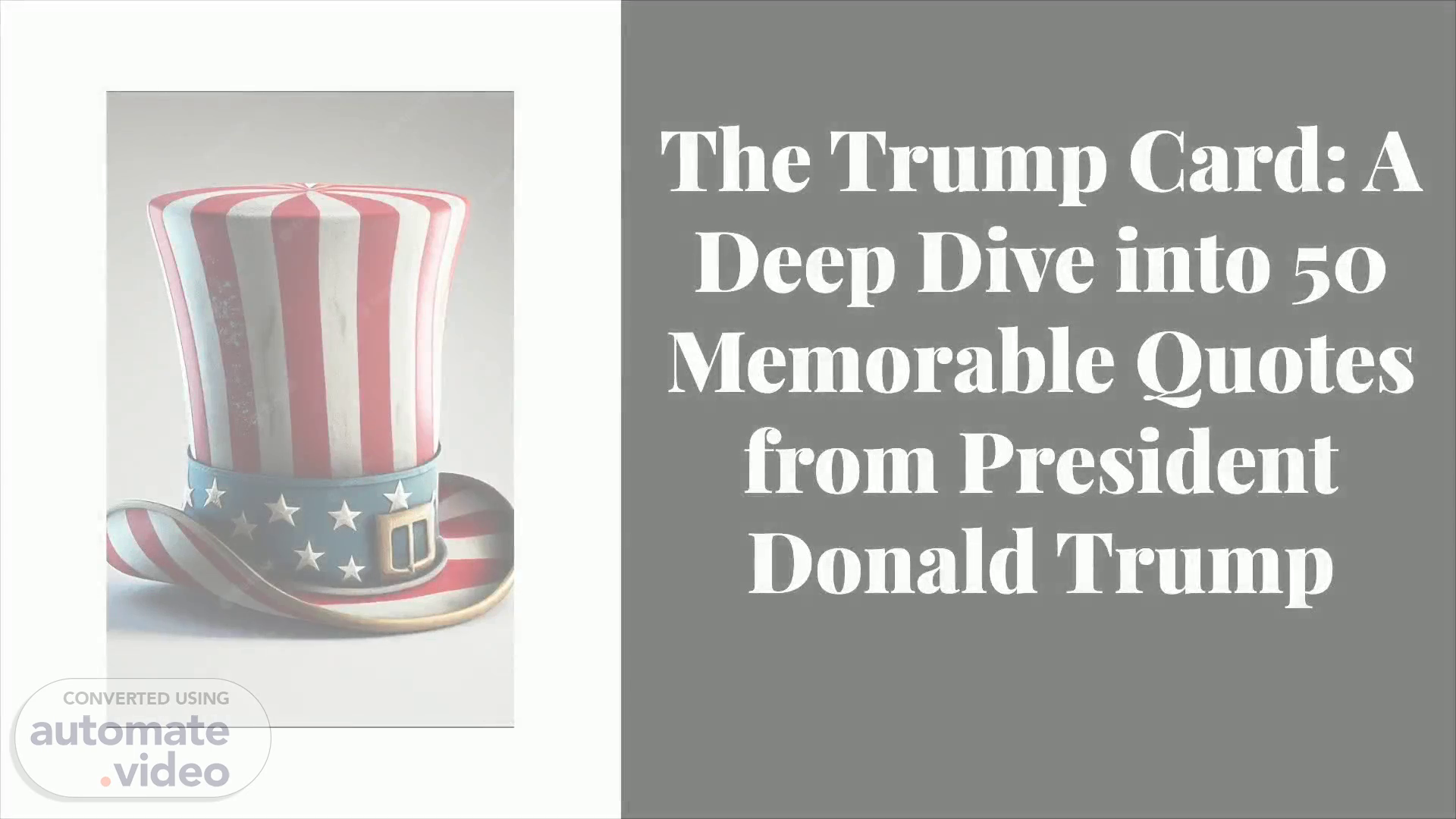 Introduction The Trump Card: A Deep Dive into 50 Memorable Quotes from President Donald Trump. This presentation will take you on a journey through some of the most memorable quotes from President Trump. From his famous catch phrases to his controversial statements, we'll explore what makes him such a unique political figure..