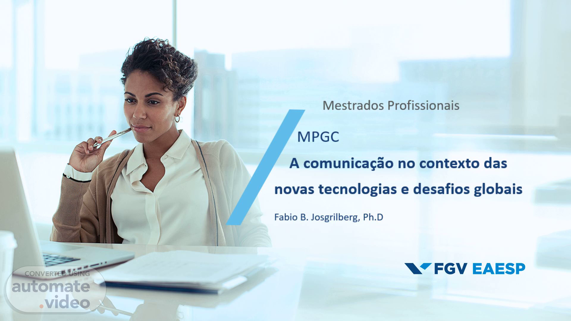 FGV EAESP. MPGC A comunicação no contexto das novas tecnologias e desafios globais Fabio B. Josgrilberg, Ph.D.
