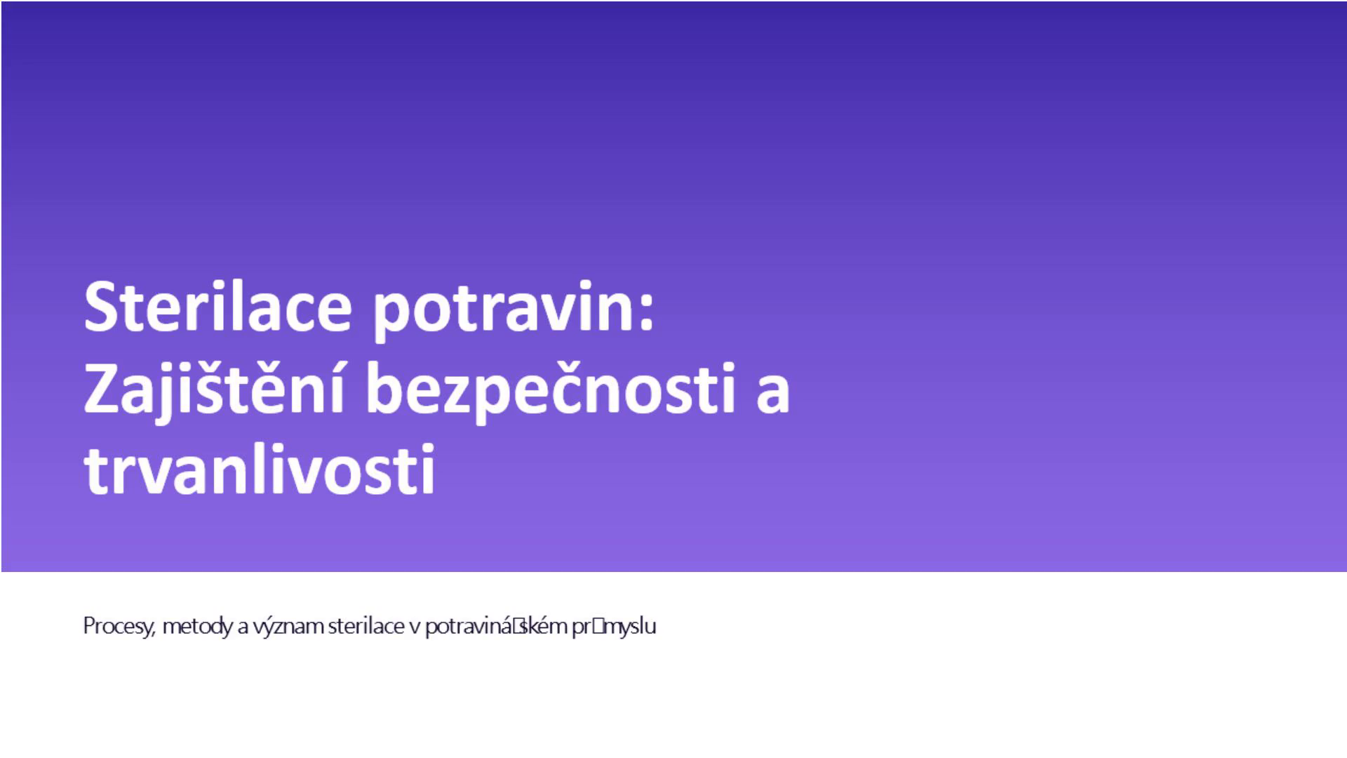 [Audio] Prezentace vznikla ve spolupráci s laboratoří KVALIFIKACE-VALIDACE. Laboratoř KVALIFIKACE-VALIDACE provádí měření rozložení teploty v autoklávách a zabývá se validací procesů pasterizace a sterilizace v autoklávách. Více informací o termických procesech naleznete na následujících stránkách: https://kvalifikace-validace.cz/sterilizace-potravin/.
