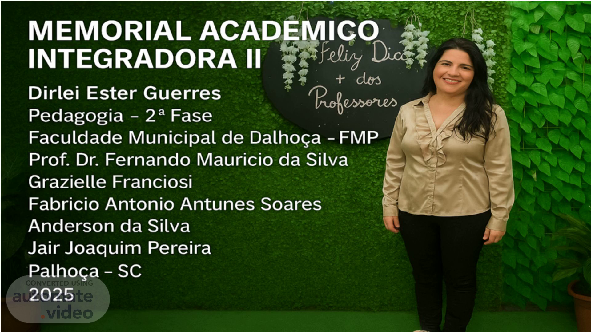 [image] MEMORIAL ACADEMIGO INTEGRADORA II Dirlei Ester Guerres Pedagogia - 2 a Fase Faculdade Municipal de Dalhoqa - FMP Prof. Dr. Fernando Mauricio da Silva Grazielle Franciosi Fabricio Antonio Antunes Soares Anderson da Silva Jair Joaquim Pereira Paihoqa - SC 2025.