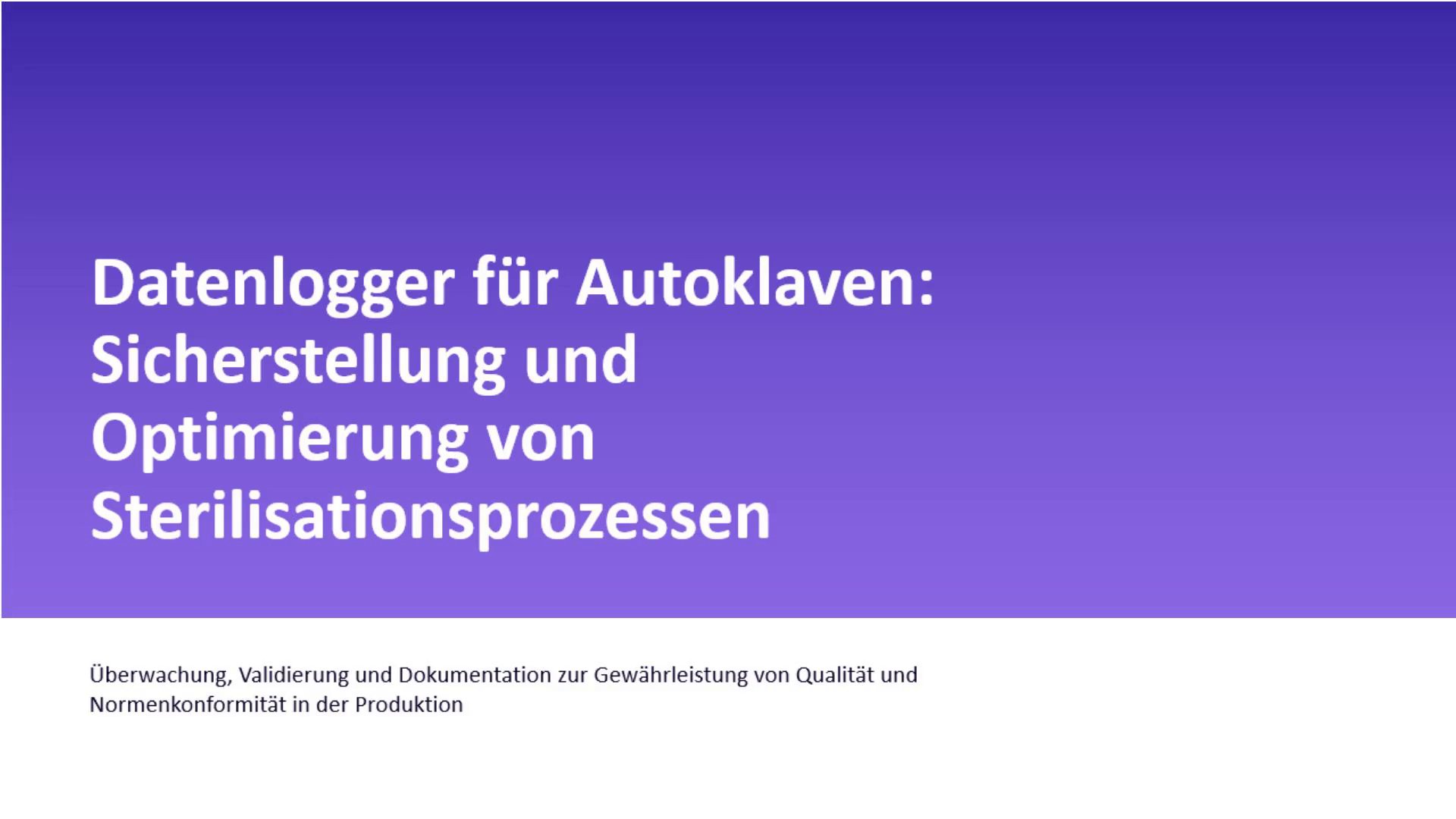[Audio] In dieser Präsentation geht es um die kontinuierliche Überwachung der Sterilisation, die durch den Einsatz von Datenloggern realisiert wird. Diese Überwachung stellt sicher, dass die Sterilisationsprozesse sicher und reproduzierbar ablaufen. Ein wichtiger Aspekt ist die lückenlose Erfassung der Prozessparameter, wodurch Abweichungen frühzeitig erkannt und korrigiert werden können. So wird die Qualität des Sterilisationsprozesses dauerhaft gewährleistet. Datenlogger werden in verschiedenen Sterilisationsgeräten eingesetzt, wie zum Beispiel in Dampfsterilisatoren, Plasmasterilisatoren sowie Reinigungs- und Desinfektionsgeräten. Durch diese umfassende Überwachung wird die Prozesssicherheit maßgeblich erhöht. Gleichzeitig unterstützt sie die Einhaltung der geforderten Qualitätsstandards, was für die Produktion von großer Bedeutung ist..