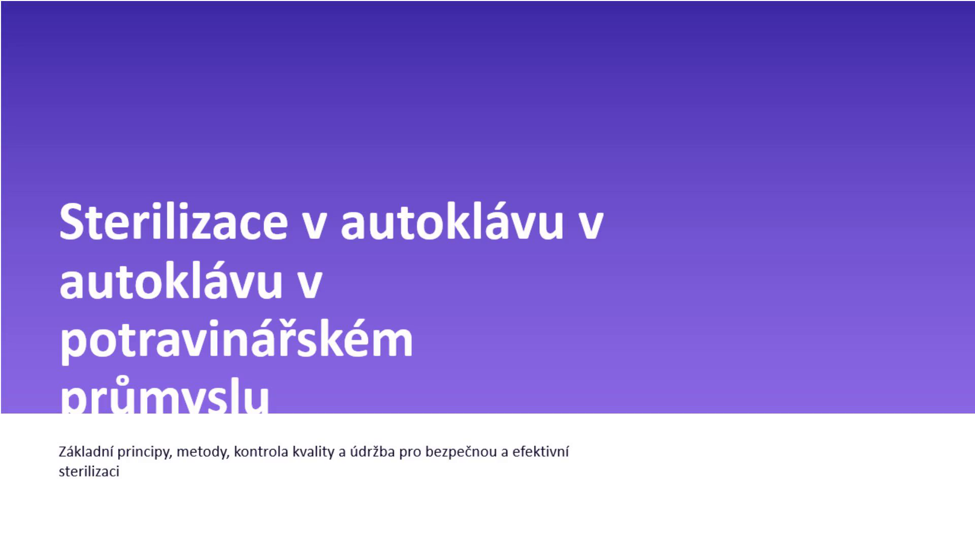[Audio] Prezentace vznikla ve spolupráci s laboratoří KVALIFIKACE-VALIDACE. Laboratoř KVALIFIKACE-VALIDACE provádí měření rozložení teploty v autoklávách a zabývá se validací procesů pasterizace a sterilizace v autoklávách. Více informací o termických procesech naleznete na následujících stránkách: https://kvalifikace-validace.cz/sterilizace-potravin/.