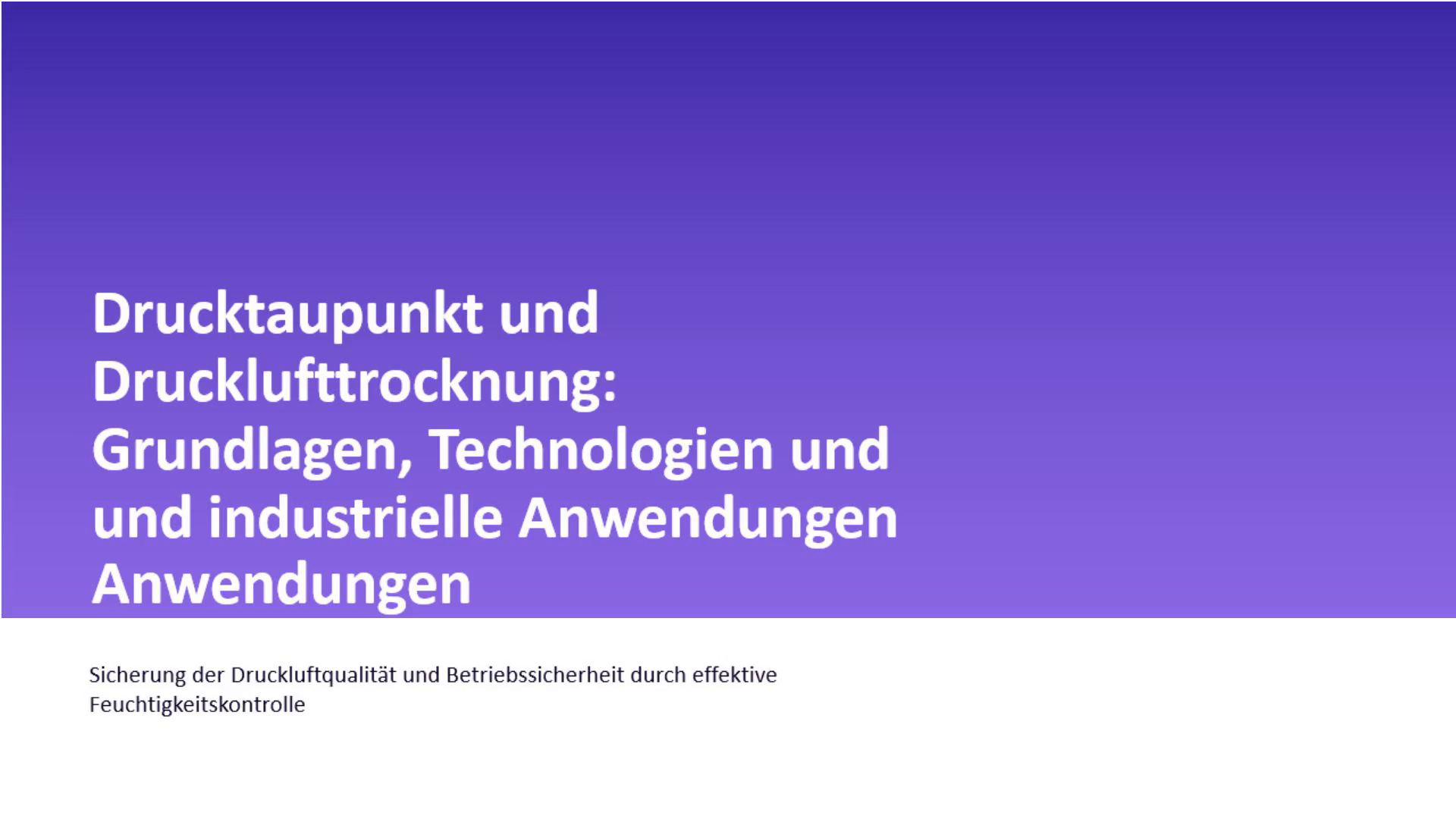 [Audio] In dieser Präsentation geht es um die Überwachung und Kontrolle des Drucktaupunkts in Druckluftsystemen. Zunächst werden Sensoren und Messgeräte eingesetzt, die kontinuierlich den Feuchtigkeitsgehalt der Druckluft erfassen. Diese Echtzeitdaten ermöglichen es, Abweichungen frühzeitig zu erkennen und gezielt Gegenmaßnahmen einzuleiten. Eine regelmäßige Kontrolle ist wichtig, um erhöhte Restfeuchte zu vermeiden, da diese zu Korrosion, Ausfällen und Qualitätsproblemen führen kann. Moderne Überwachungssysteme sind ein integraler Bestandteil eines effizienten Druckluftmanagements. Sie helfen nicht nur, die Betriebskosten zu optimieren, sondern auch die Produktqualität sicherzustellen. Insgesamt trägt die Überwachung des Drucktaupunkts somit maßgeblich zur Zuverlässigkeit und Wirtschaftlichkeit von Druckluftanlagen bei..