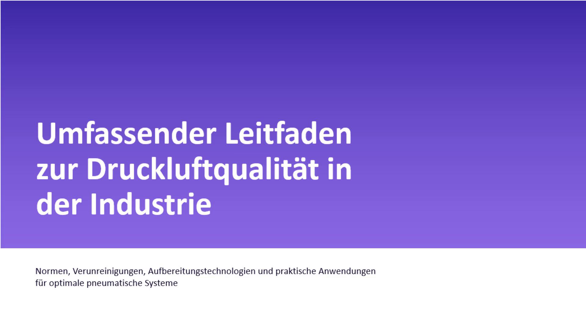 [Audio] In dieser Einführung zur Druckluftqualität erklären wir zunächst, was Druckluft ist: Luft, die unter Überdruck gespeichert wird und in vielen industriellen Anwendungen zum Einsatz kommt. Druckluft wird unter anderem zur Energieübertragung, zur Steuerung von Maschinen und zur Reinigung verwendet und spielt somit eine zentrale Rolle in industriellen Prozessen. Die Qualität der Druckluft ist besonders wichtig, da sie die Funktion und Lebensdauer pneumatischer Komponenten maßgeblich beeinflusst. Verunreinigungen wie Partikel, Wasser oder Öl können erhebliche Schäden verursachen und die Anlagenleistung beeinträchtigen. In sensiblen Branchen wie der Lebensmittel-, Kosmetik- und Pharmaindustrie ist eine hohe Druckluftqualität unerlässlich, um Produktionsausfälle und Kontaminationen zu vermeiden. Deshalb ist die Aufbereitung der Druckluft ein zentraler Prozess, der sicherstellt, dass Reinheits- und Zuverlässigkeitsanforderungen erfüllt werden. So wird die Qualität der Druckluft dauerhaft gewährleistet..