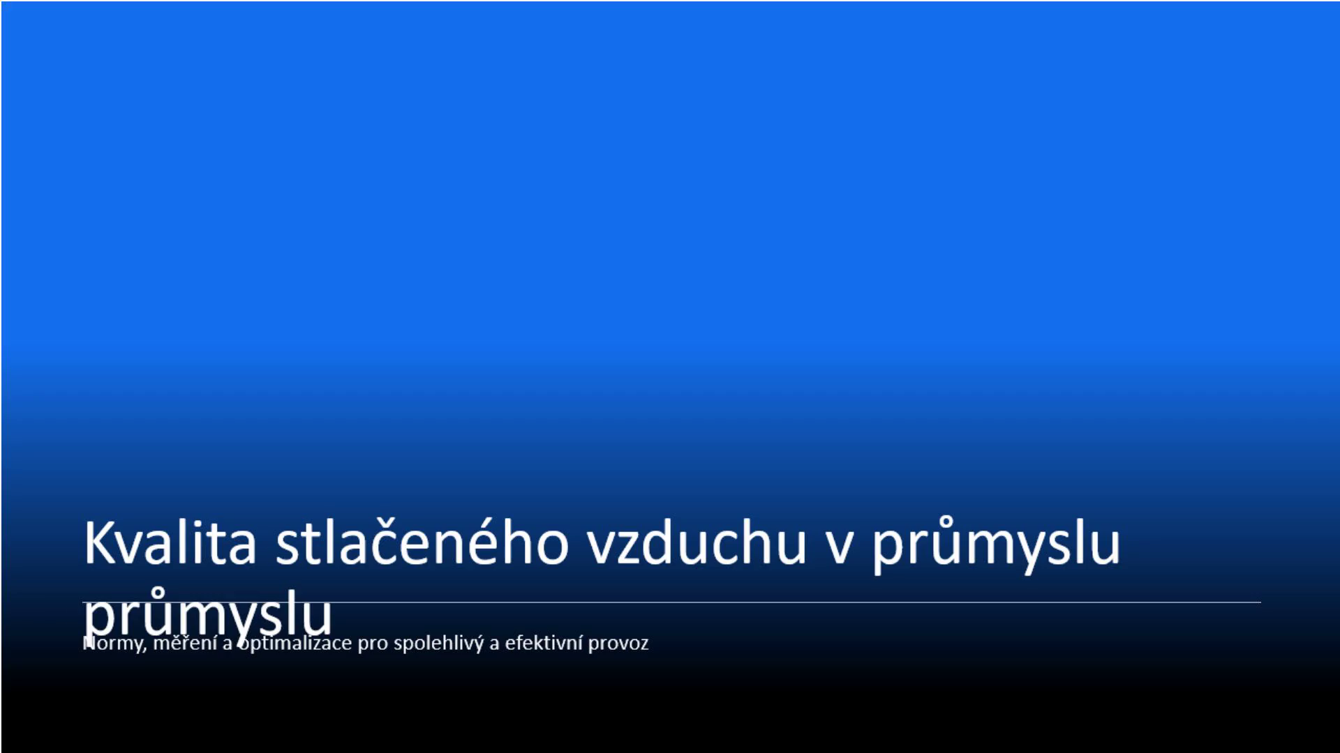 [Audio] Prezentace vznikla ve spolupráci s laboratoří KVALIFIKACE-VALIDACE. Laboratoř KVALIFIKACE-VALIDACE provádí zkoušky kvality stlačeného vzduchu podle normy ISO 8573. Více informací o termických procesech naleznete na stránkách: https://kvalifikace-validace.cz/iso-8573-1/.