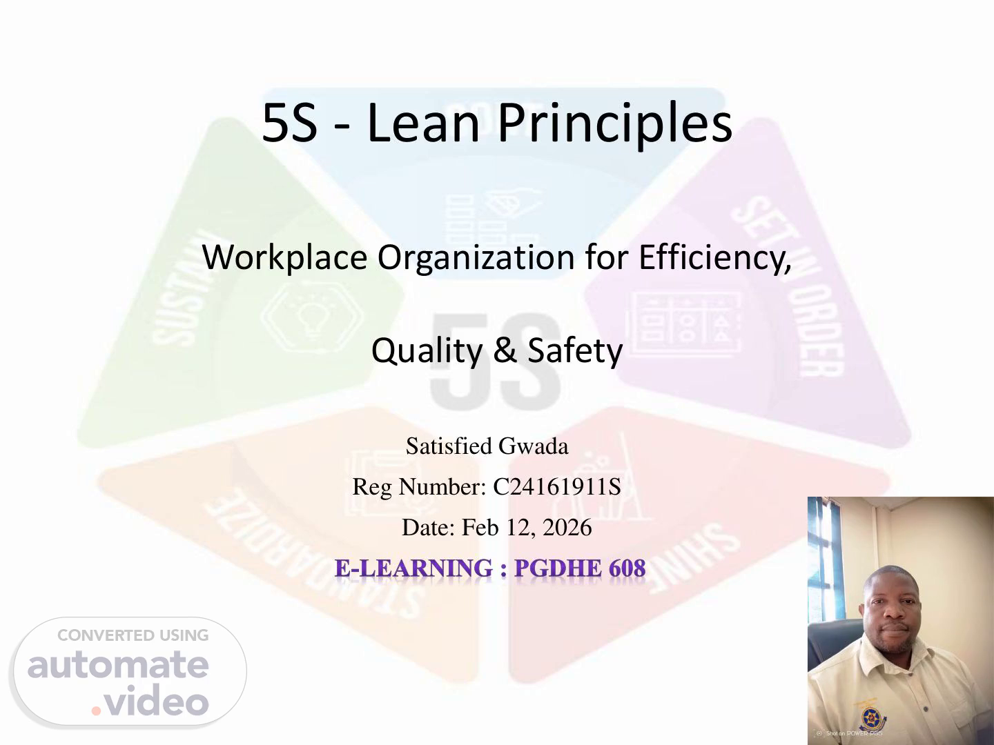 5S - Lean Principles Workplace Organization for Efficiency, Quality & Safety Satisfied Gwada Reg Number: C24161911S Date: Feb 12, 2026.
