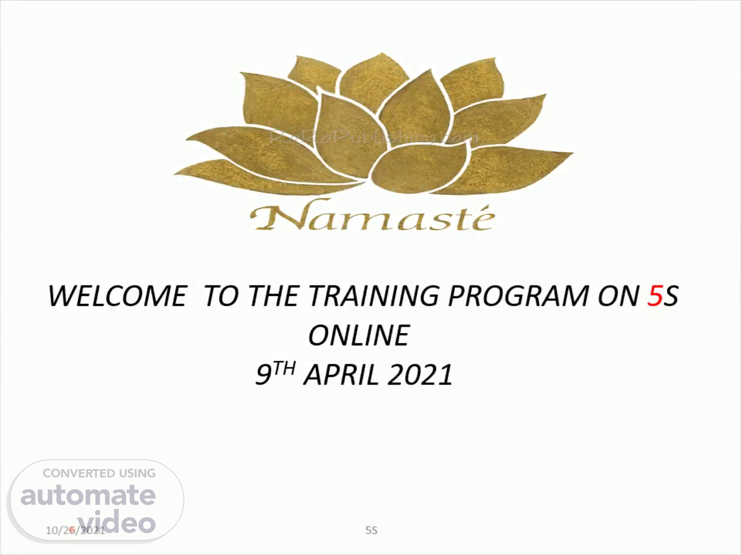 . WELCOME TO THE TRAINING PROGRAM ON 5 S ONLINE 9 TH APRIL 2021.