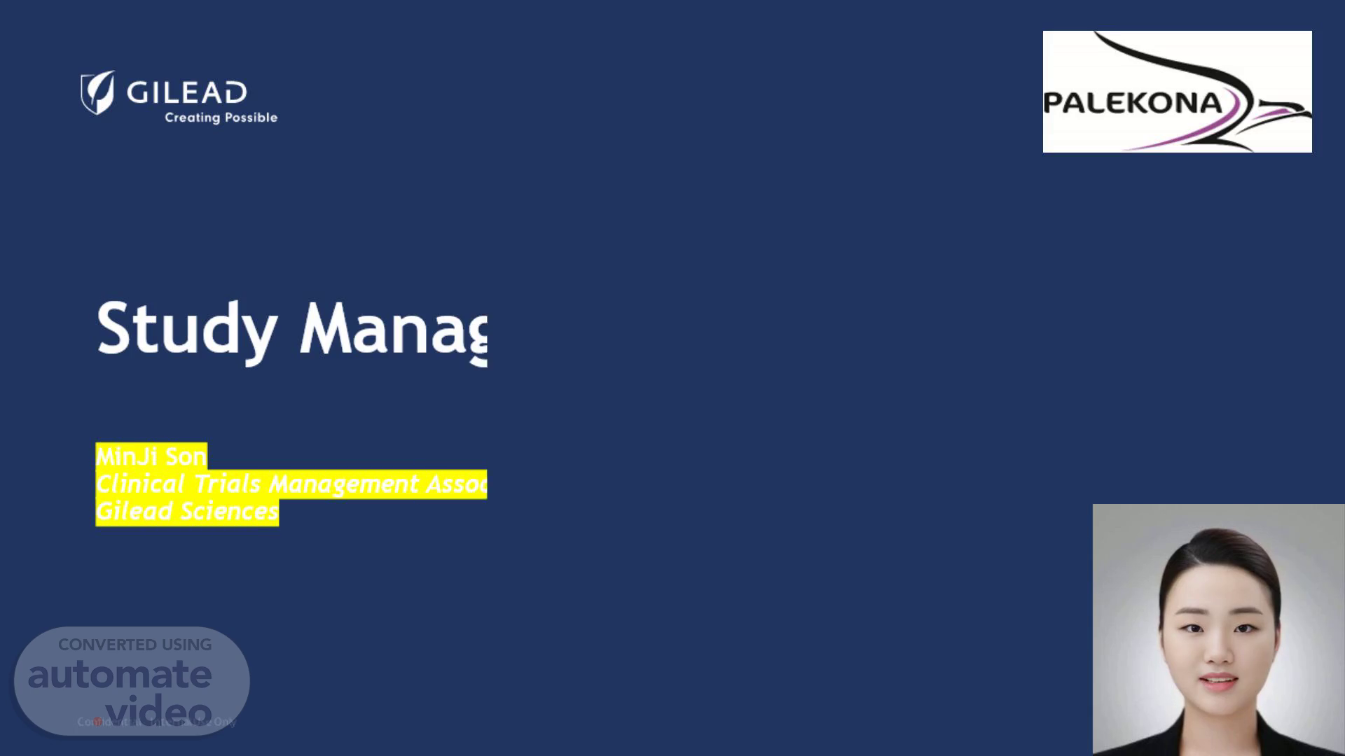 [Audio] I'm MinJi Son Clinical Trials Management Associate within Clinical Operations at Gilead Sciences. I will be sharing an overview of study management which includes Meeting Agendas Communication Pathways Study Management Study timelines/milestones and Safety Overviews such as S-A-E and pregnancy..