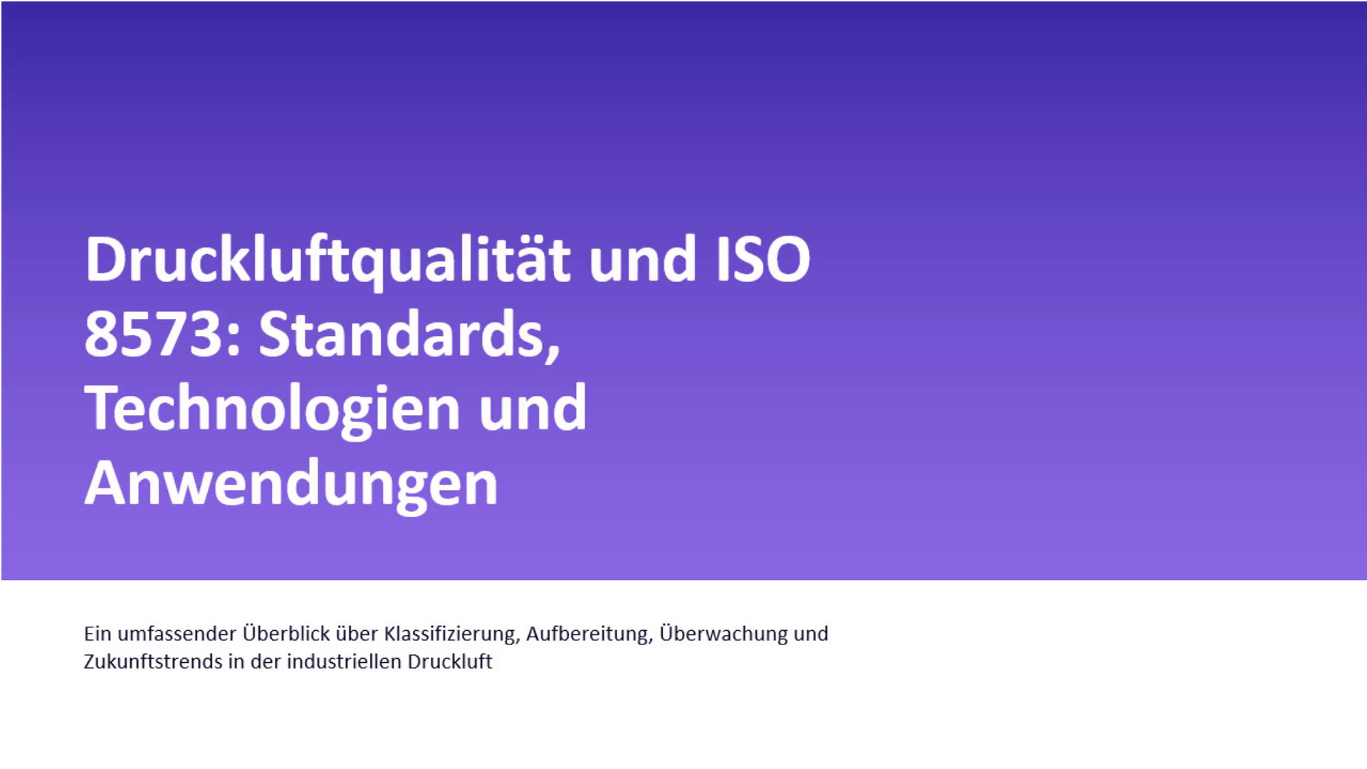 [Audio] Druckluftqualitätsklasse. Druckluftqualität und ISO 8573: Standards, Technologien und Anwendungen.