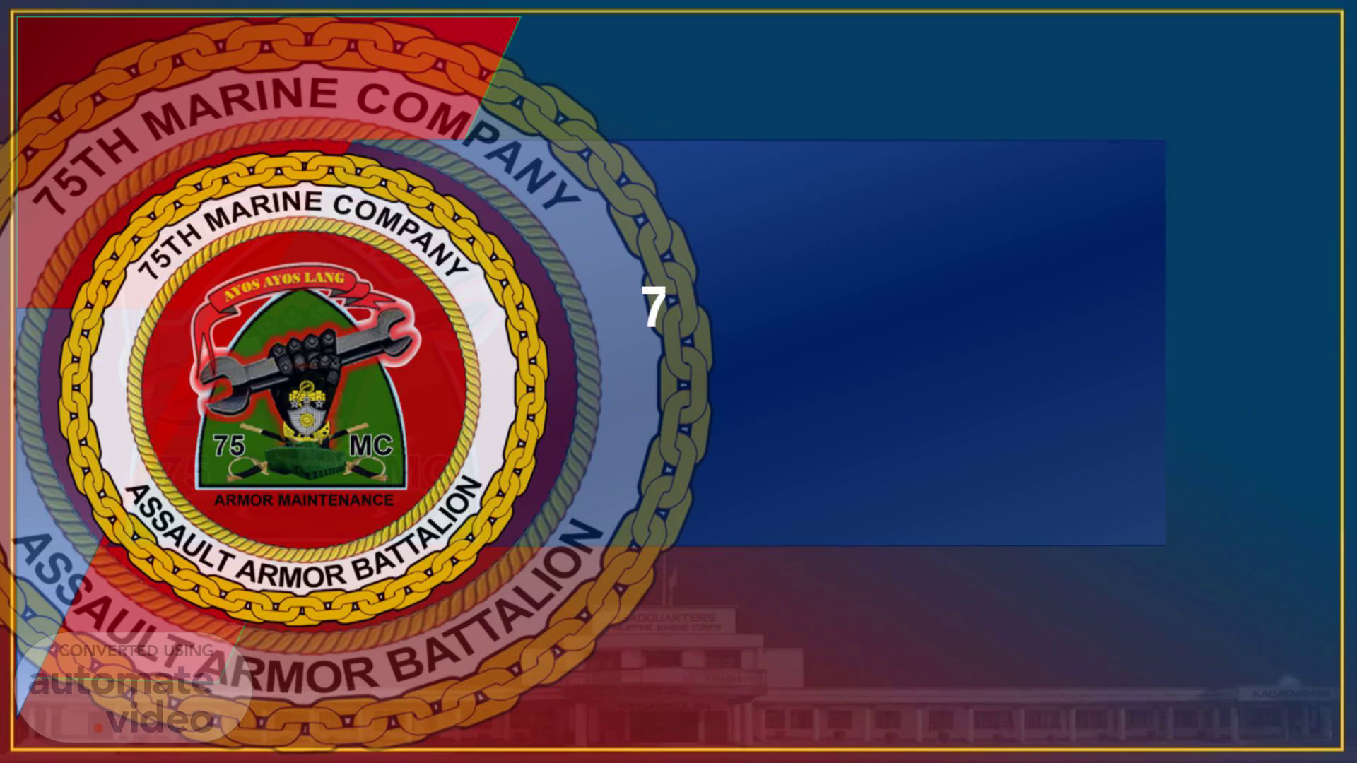 [Audio] Good Afternoon Today I am here to brief you on the 75th Marine Company Unit. We have seven sections of specialized personnel including a Supply Ammunition Section an Armor Maintenance Section an Engine Overhauling Section a Suspension Section an Electrical Section a Transmission Section and a Turret Section. Leading the Supply Ammunition Section is Platoon Sergeant TSgt Filomeno S Abitona. On his team are Sgt Jeric A Ibañez and Cpl Rhenmar M Dona. The Armor Maintenance Section is also led by TSgt Filomeno S Abitona with SSgt Andres Reylin L Quiao by his side. In charge of the Engine Overhauling Section is TSgt Medzmar A Namla and Sgt Steve C Alimeos with Cpl Jasperdie A Espinosa in support. The Suspension Section is overseen by SSgt Joemel J Besa with Cpl Michael J Domingo and Cpl Mark Anthony L Alba on board. The Electrical Section is managed by SSgt Danilo C Fernandez with Cpl Mar John H Varona. Last but not least the Transmission Section is led by SSgt Jerom N Belnas and Sgt Christopher P Gupilan and the Turret Section is headed by Cpl Joeveth P Zuñiga and Cpl Joepardy D Lopez. Thank you for your time and attention..