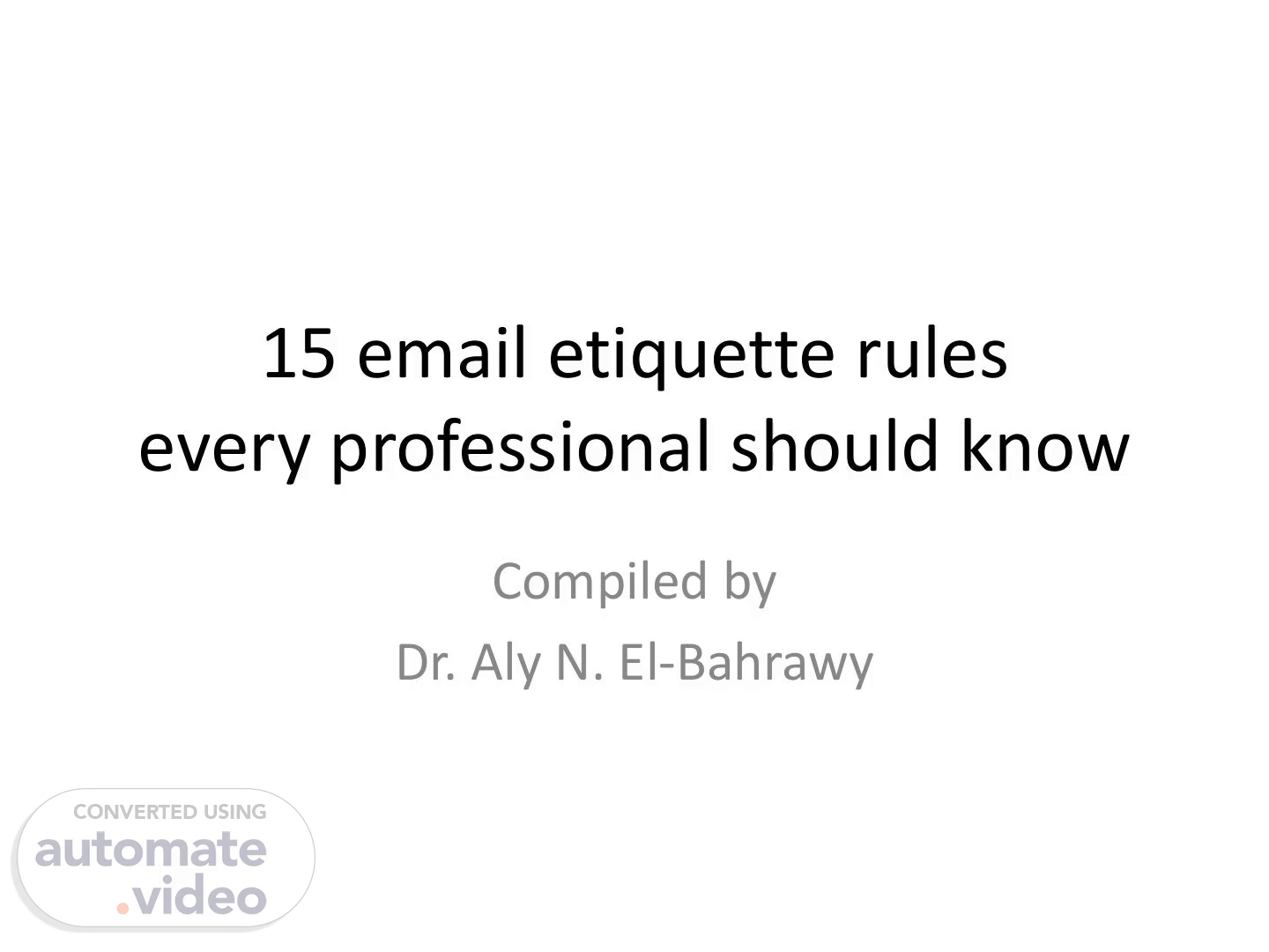 [Audio] 15 email etiquette rules every professional should know Compiled by Dr. Aly N. El-Bahrawy.