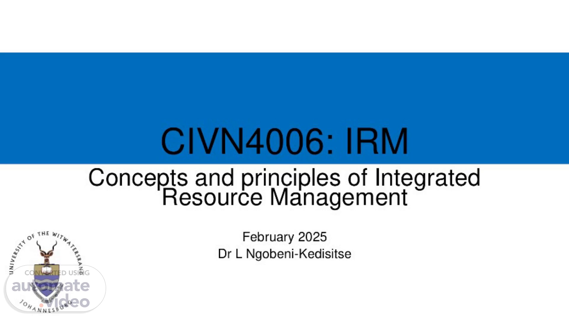 CIVN4006: IRM Concepts and principles of Integrated Resource Management February 2025 Dr L Ngobeni-Kedisitse.