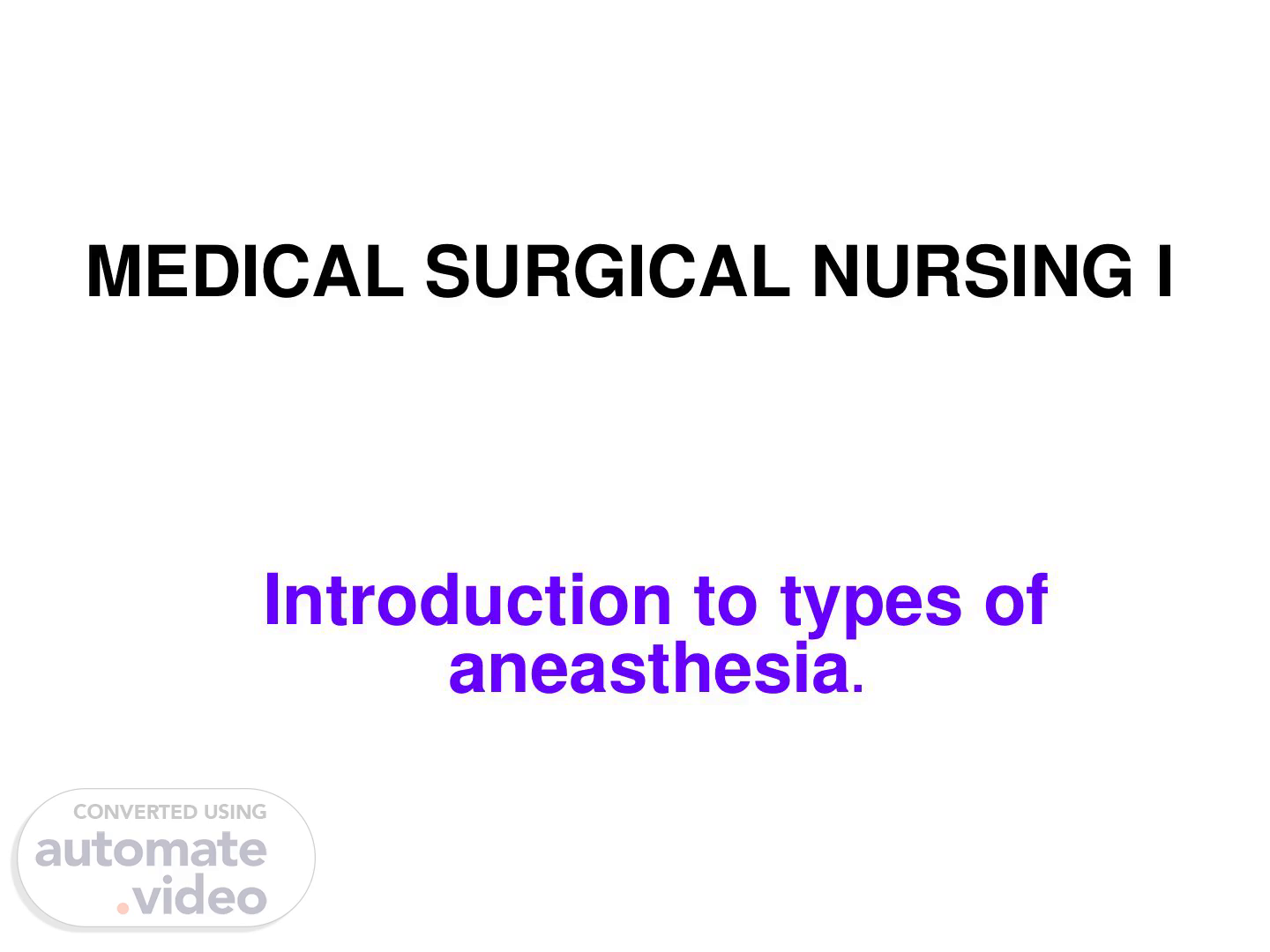 [Audio] MEDICAL SURGICAL NURSING I Introduction to types of aneasthesia. 1.