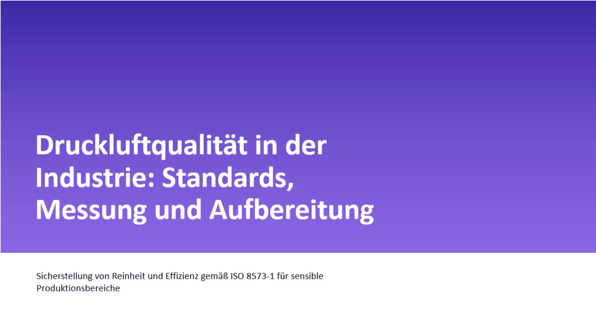 [Audio] Die Druckluftqualität spielt eine zentrale Rolle in der Produktion und Qualitätssicherung. Die Einhaltung der Druckluftqualitätsstandards ist entscheidend, um Produktionsausfälle zu vermeiden und die Produktqualität dauerhaft sicherzustellen. Verunreinigte oder feuchte Druckluft kann erhebliche Schäden an Maschinen und Anlagen verursachen, was die Lebensdauer der Geräte verkürzt und die Effizienz mindert. Hochwertige Druckluft hingegen reduziert den Verschleiß, senkt die Energiekosten um bis zu 30 % und minimiert Stillstandszeiten. Für Instandhaltungs- und Qualitätssicherungsleiter ist es daher besonders wichtig, die Druckluftqualität kontinuierlich zu überwachen und zu optimieren. So wird eine stabile und wirtschaftliche Produktion gewährleistet..
