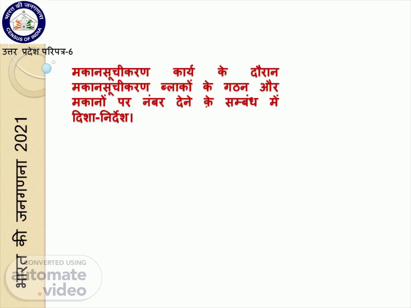 मकानसूचीकरण कार्य के दौरान मकानसूचीकरण ब्लाकों के गठन और मकानों पर नंबर देने क़े सम्बंध में दिशा-निर्देश।.
