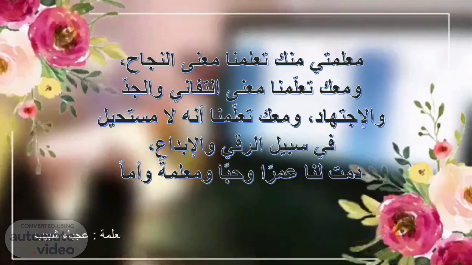 معلمتي منك تعلمنا معنى النجاح، ومعك تعلّمنا معنى التفاني والجدّ والإجتهاد ، ومعك تعلّمنا أنه لا مستحيل في سبيل الرقي والإبداع، دمت لنا عمرًا وحبًا ومعلمةً وأماً.