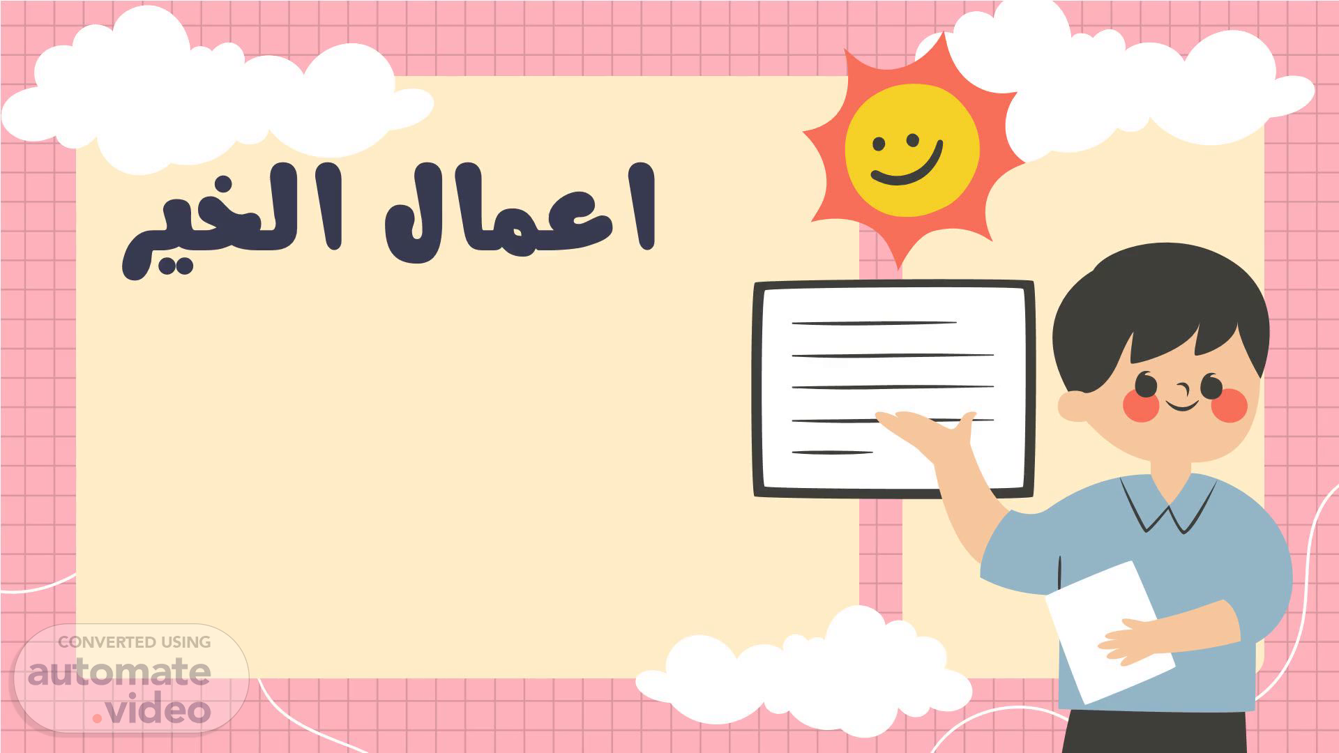 [Audio] السلام عليكم أصدقائي اليوم سأتحدث معكم عن أعمال الخير أعمال الخير ممكن تكون اشياء بسيطة جدا مثلا نص فقرتك.