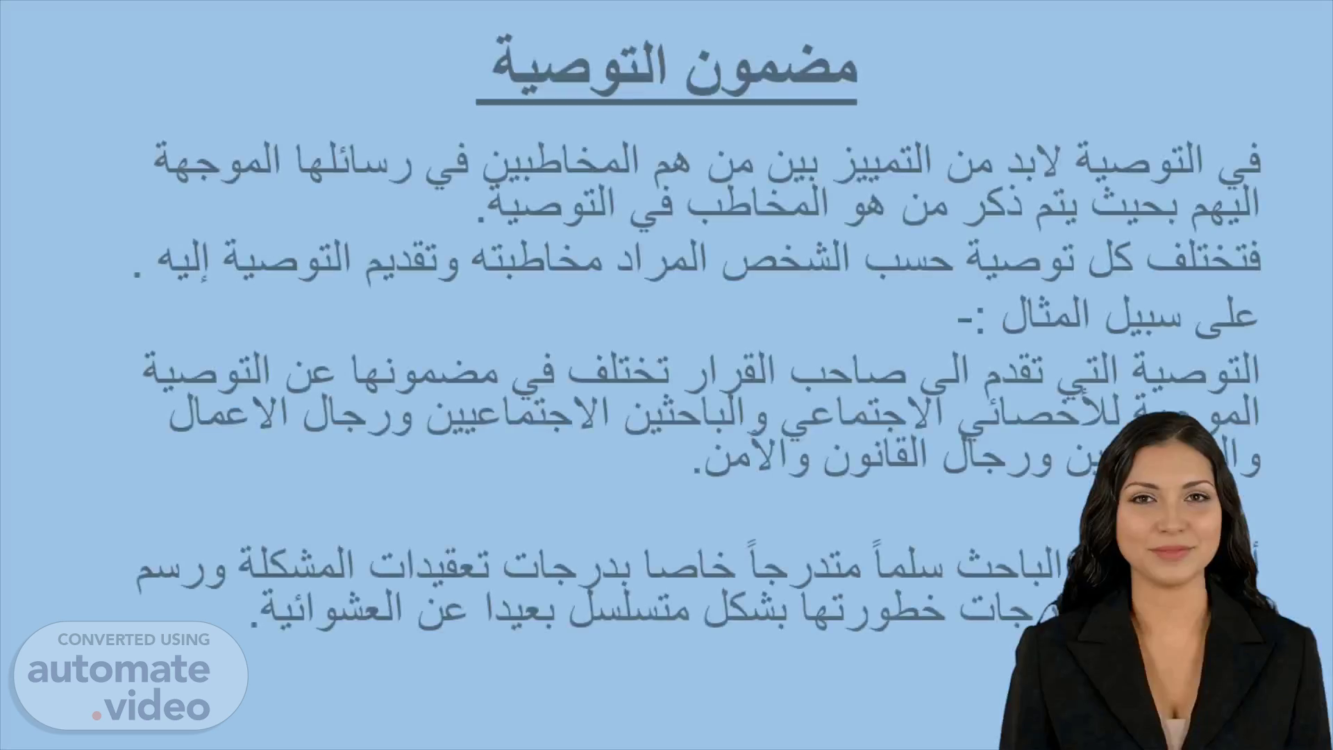 [Virtual Presenter] رحبوا بكم في هذه الجلسة التي سنناقش فيها التوصيات الخاصة بالمشكلات والأحوال المطروحة من قبل الطرفين لصالح الأصحاب القرار والمجتمع العام. وسوف نتناول كلاما شاملا عن طريق الترتيب السلمي لتوصياتنا اعتمادا على خصوصيات المشكلة وخطورتها. نتطلع للحصول على ثمن بالمشاركة مع بعضنا البعض في هذه الجلسة..