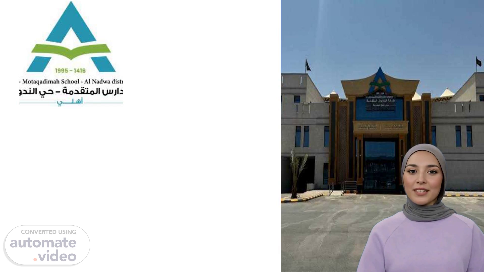 [Virtual Presenter] أهلا وسهلا بكم في الدرس الأول من العرض التقديمي لمدارس المتقدمة. نحن مفتخرون بأن نكون مؤسسة تعليمية رائدة في حي الندوة، حيث نقدم تعليماً متميزاً يجمع بين المسار الأهلي والمسار ثنائي اللغة. نلتزم بتوفير تعليم يتناسب مع تطلعات رؤية المملكة 2030 في المنطقة الوسطى. دعونا نبدأ هذه الرحلة التعليمية الملهمة معاً..