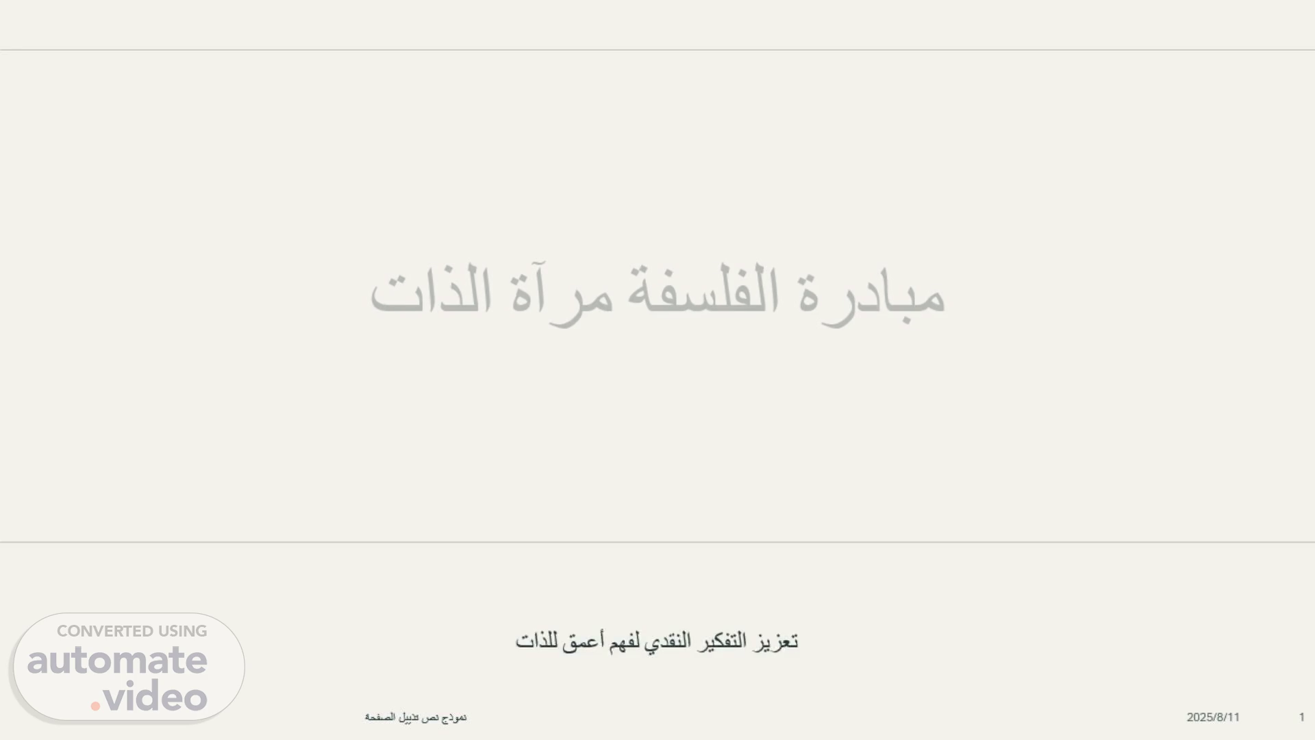 [Audio] تهدف هذه الشريحة إلى تعزيز التفكير النقدي وفهم أعمق للذات. تستند إلى معلومات الملف المذكور أعلاه، الذي يحتوي على مبادرة الفلسفة "مرآة الذات" الجزء الأول. تهدف المبادرة إلى تطوير الفكر النقدي وتوسيع الوعي لتحقيق تحول إيجابي في حياتنا. تضم الشريحة تحديد الأهداف الرئيسية والمحاور العشرة التي تغطي مجموعة متنوعة من الموضوعات المتعلقة بالفلسفة والذات. ستتم آليات التنفيذ من خلال جلسات تفاعلية وورش عمل لتوفير بيئة تفاعلية وبناء مجتمع تعليمي يتمحور حول التفكير النقدي. في النهاية، تهدف مبادرة الفلسفة "مرآة الذات" إلى تعزيز التفكير النقدي وتطوير شخصيتنا وتحقيق تطور إيجابي في حياتنا..