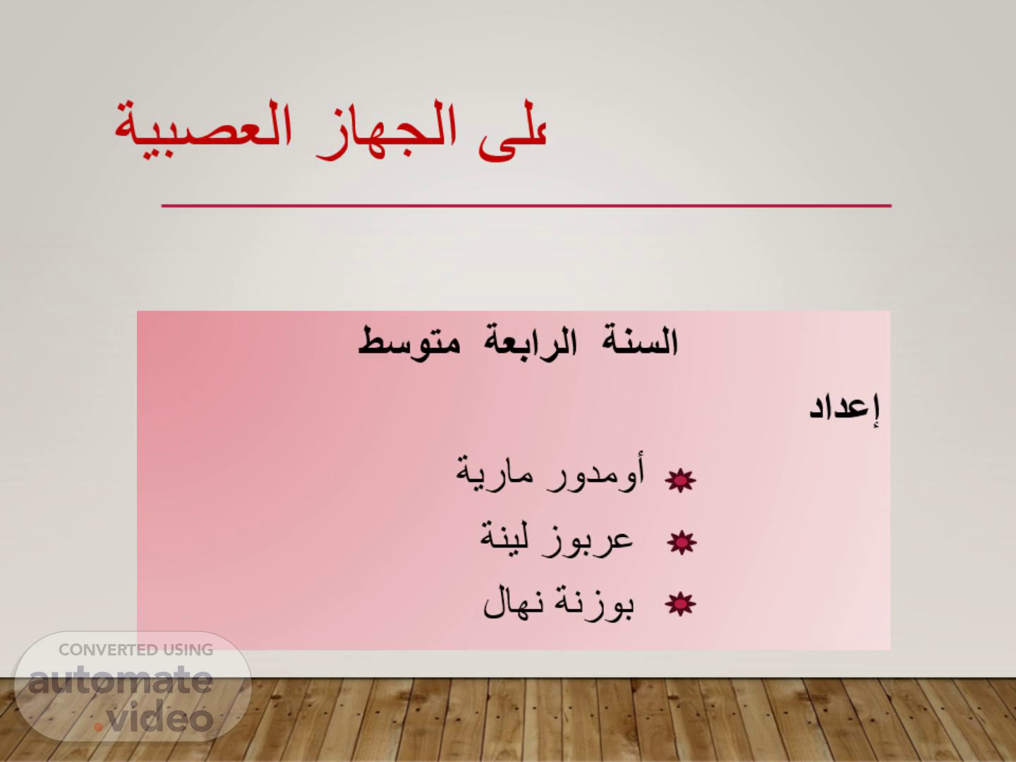تأثير الكحول على الجهاز العصبية. السنة الرابعة متوسط إعداد أومدور مارية عربوز لينة بوزنة نهال.