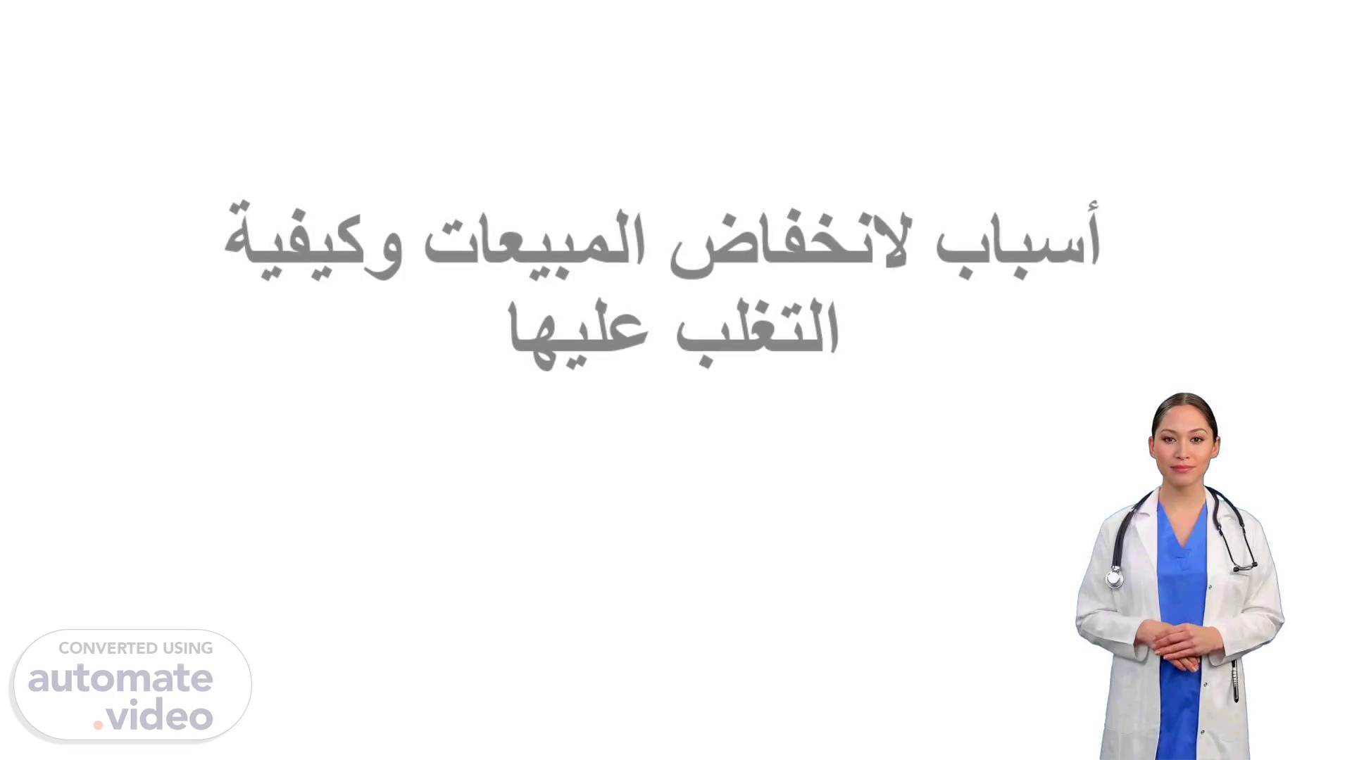[Virtual Presenter] يمكننا اليوم الشاركة في قضية عامة حول كيفية تغلبية على أسباب لانخفاض المبيعات. سنتطرق إلى بعض الحلول التي يمكننا اتخاذها لتحسين المبيعات ولذلك نتوجه الآن الى العنوان الذي نتطرق اليه قريباً..