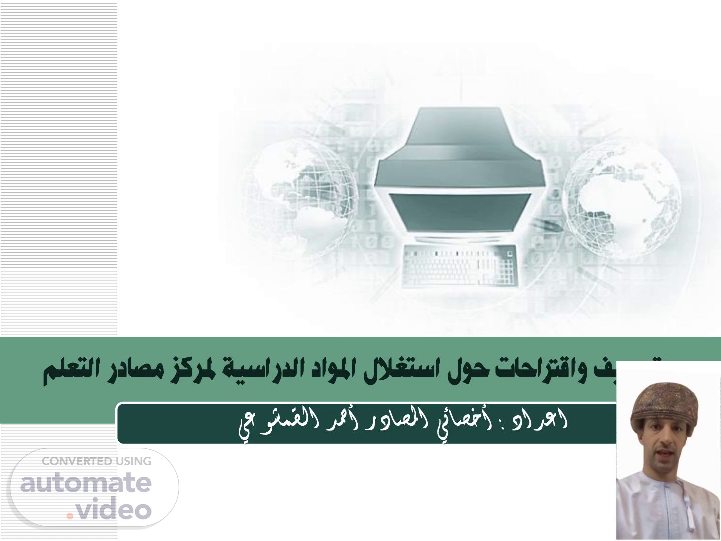 [Audio] اليوم نقدم الدرس السادس من عشرة دروس لتقديم البوربوينت. سنتحدث عن مجموعة من الأحرف والأرقام والكلمات غير مفهومة بدون سياق واضح. سنبدأ بالتحدث عن الشعار في الصفحة، وهو يحتوي على كلمة "تاساردلا" التي تعني الوظيفة الرئيسية للبرنامج. ثم سنتحدث عن الخانة الموجودة تحت الشعار، والتي تحمل كلمة "لإ"، وهي مسؤولة عن تحرير النصوص والكتابات في الصفحة. ننتقل الآن إلى المربع الأيسر والمحتوي على كلمة "امو" التي تشير إلى إدارة الصور والرسومات في النص. ونتابع بالمربع الأيمن الذي يحتوي على كلمة "ثادتحلأا" المسؤولة عن تحديد أماكن الخطوط والألوان في النص. وفي الخانة الموجودة على يمين الصفحة، سنتحدث عن كلمة "فارتغجلا" المسؤولة عن تنسيق النص وإعطائه الشكل المناسب. وفي الخانة الأخيرة، سنوضح النص غير المفهوم بدون سياق واضح في الصفحات اللاحقة. نلتقي في الدرس السابع من عشرة دروس لتقديم البوربوينت..