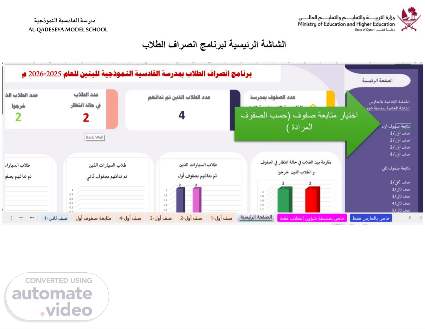 ةيجذومنلا ةيسداقلا ةسردم AL-QADESEYA MODEL SCHOOL ةشاشلا بلاطلا فارصنا جمانربل ةيسيئرلا فوفص ةعباتم رايتخا فوفصلا بسح( ةدارملا ).