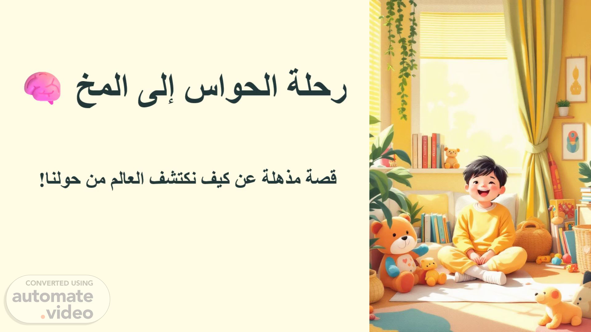 [Audio] عندما نتحدث عن الحواس، نتحدث عن قدرة عقولنا على استيعاب العالم بأكمله. القصة الرائعة عن آدم التي نرويها هي قصة عن رحلة الحواس إلى المخ. فما هو المخ؟ المخ هو عضو فريد من نوعه في جسم الإنسان، يلعب دوراً حاسماً في تفسير الإشارات الحسية وتحويلها إلى معلومات مفهومة لدينا. في الصفحة الخامسة من عرضنا، سنتعرف على قصة آدم وكيف نكتشف العالم من حولنا من خلال رحلة حواسه إلى المخ. نحتاج المخ لأنه يتحكم في جميع وظائف الجسم، سواء كانت حركاتنا أو تفكيرنا أو إحساسنا بالألم. عندما لمس آدم الكوب الساخن، شعر بالحرارة وصعقته الكهرباء وقالت الأعصاب الحسية في الجلد: "هذا ساخن!". وعندما سمع الصوت لأول مرة، قالت الأذن "هذا صوت!". وهكذا تقوم الحواس باستقبال المنبهات المختلفة وإرسالها إلى المخ ليتم معالجتها. الحواس هي النافذة التي نرى ونسمع ونشم ونتذوق ونلمس من خلالها العالم، ولكن المخ هو القوة الخفية التي تعمل في الخلفية لتشغيل هذه النوافذ وجعلنا نفهم كل شيء حولنا. نحن الآن على الصفحة الخامسة من عرضنا، وهذه الصفحة هي البوابة الأساسية إلى فهم المخ وتفسير الإشارات الحسية. من خلال الرحلة الرائعة لآدم، نتعلم أن الحواس والمخ يعملان معاً لجعلنا قادرين على استيعاب وتجربة العالم بطريقة مدهشة وفريدة. في الصفحة القادمة، سنتعرف على دور المخ في تفسير الإشارات الحسية وبناء الخبرات والمعرفة. شكرا للاستماع، وأتمنى أن تكونوا استمتعتم بالرحلة الرائعة لآدم وتعلمتم شيئاً جديداً عن رحلة الحواس إلى المخ. أراكم في الصفحة القادمة..