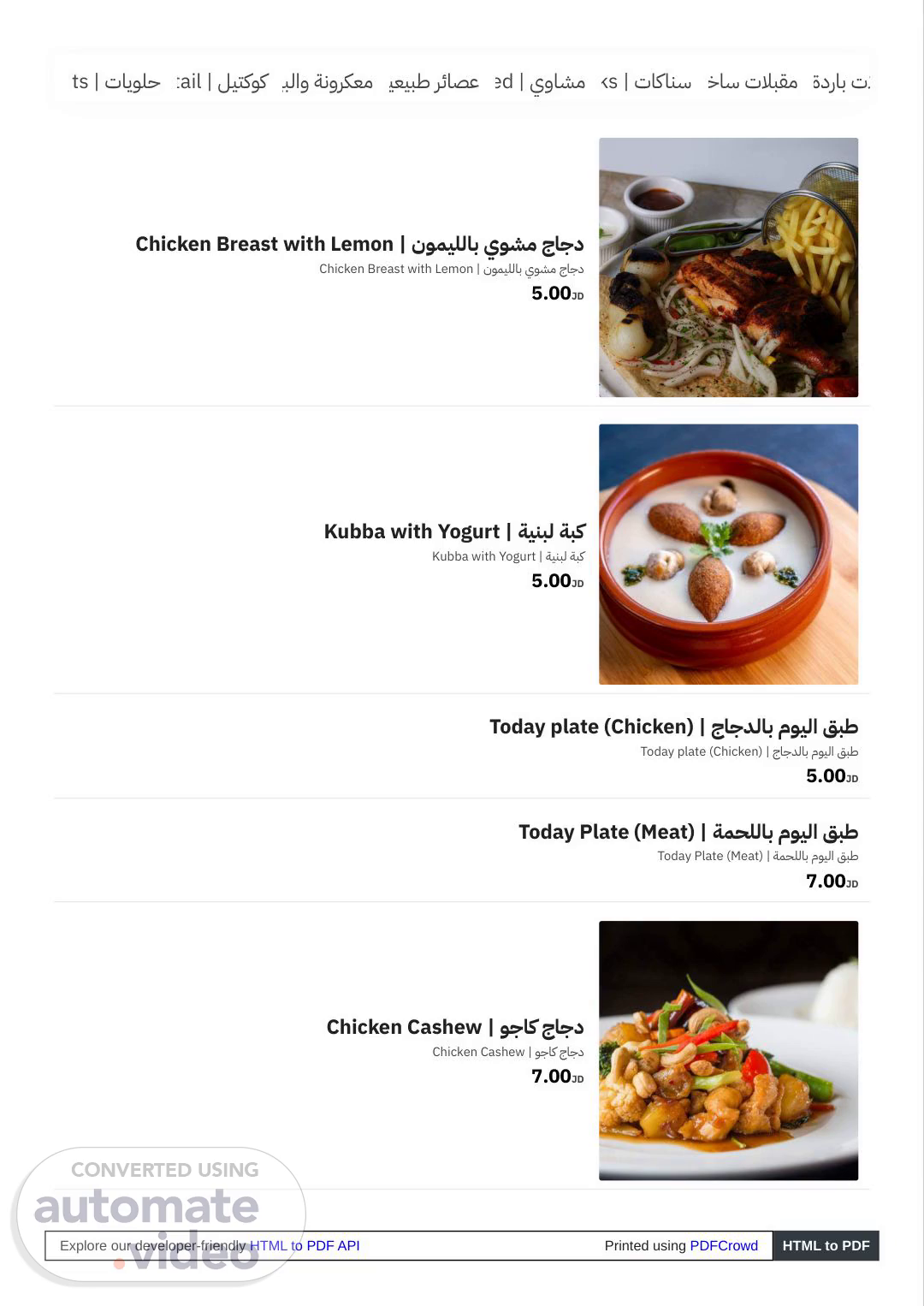 Fried | ﻲﻠﻘﻣ7.00JD Grilled | يﻮﺸﻣ7.00JD Mix Grill | ﻞﻜﺸﻣ يوﺎﺸﻣ Mix Grill | ﻞﻜﺸﻣ يوﺎﺸﻣ �kg | ك�18.00JD Orange | لﺎﻘﺗﺮﺑ Orange | لﺎﻘﺗﺮﺑ 2.00JD Mango | ﻮﺠﻧﺎﻣ Mango | ﻮﺠﻧﺎﻣ 2.00JD Explore our developer-friendly HTML to PDF API Printed using PDFCrowd HTML to PDF.