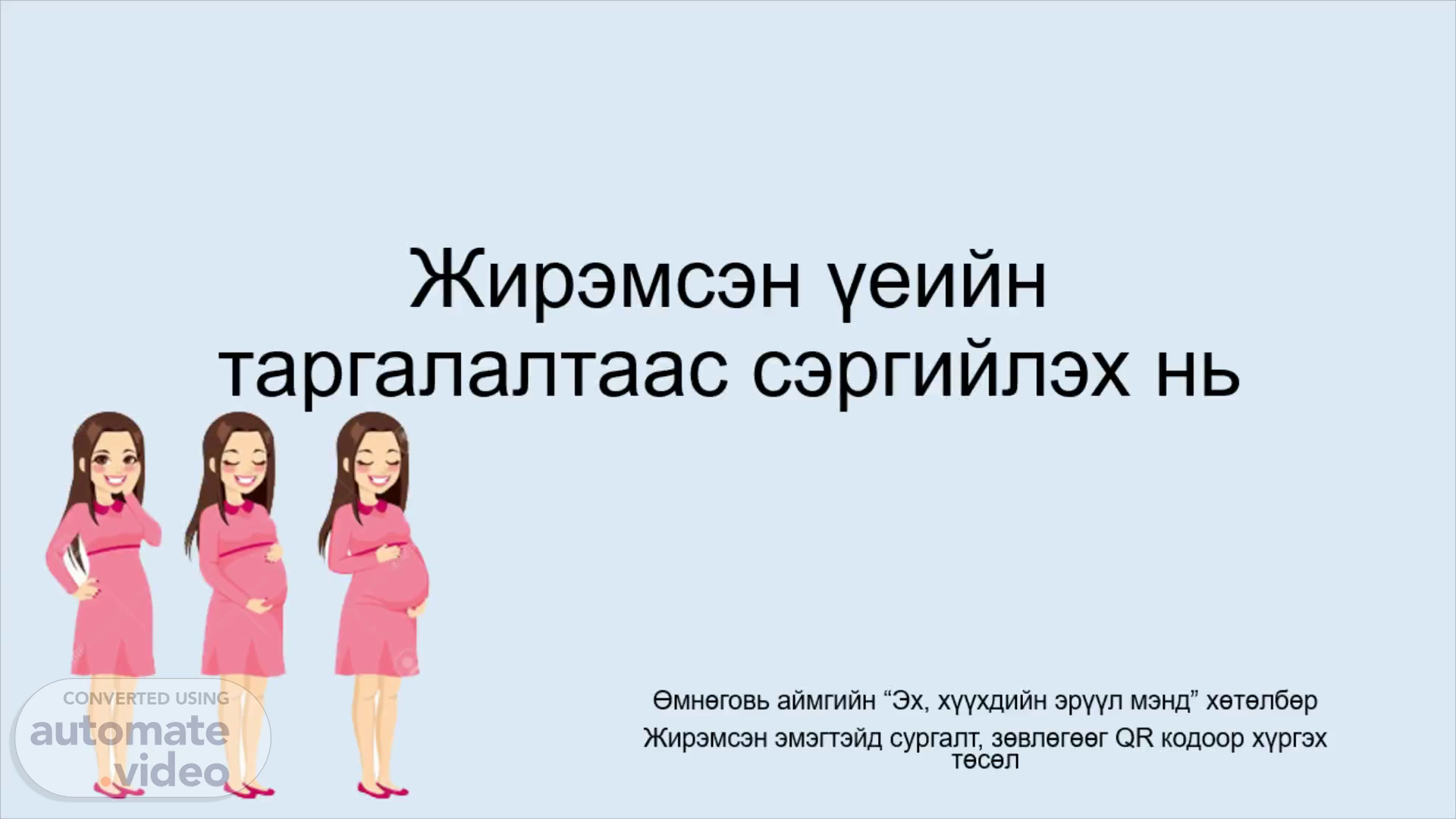 Жирэмсэн үеийн таргалалтаас сэргийлэх нь. Өмнөговь аймгийн “Эх, хүүхдийн эрүүл мэнд” хөтөлбөр Жирэмсэн эмэгтэйд сургалт, зөвлөгөөг QR кодоор хүргэх төсөл.
