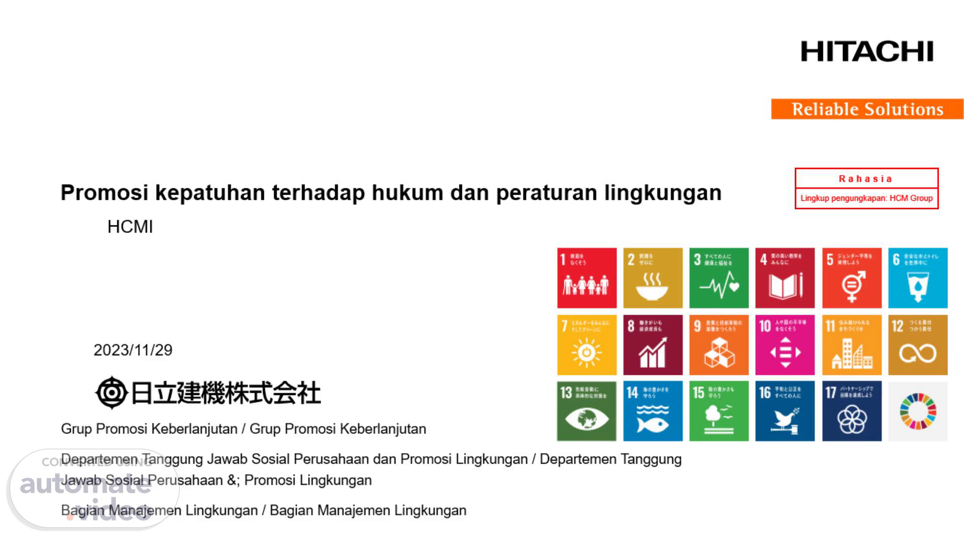 [Audio] Selamat datang bapak ibu sekalian. Terima kasih atas waktunya untuk mengikuti Training Promosi Kepatuhan terhadap Hukum dan Peraturan lingkungan di PT HCMI..