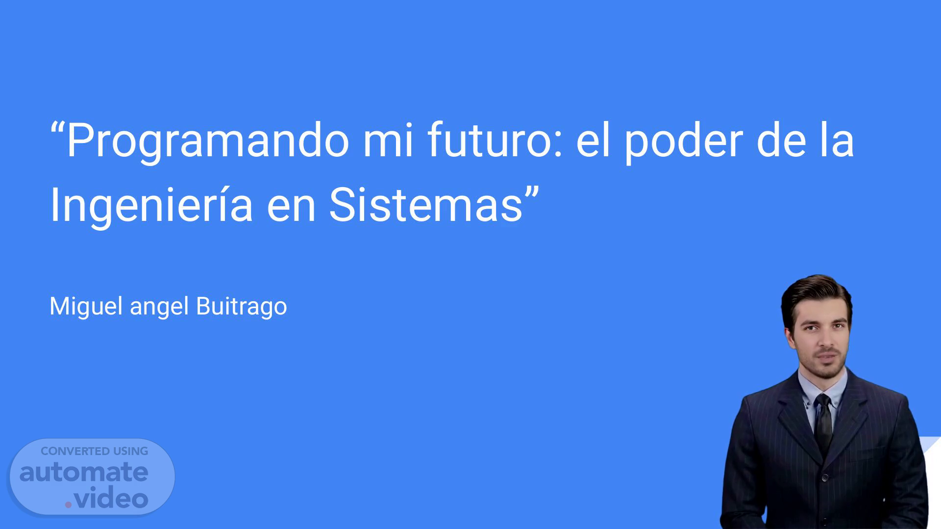 [Virtual Presenter] "La presentación se centra en cómo la ingeniería en sistemas puede ser una herramienta poderosa para moldear nuestro futuro. Exploraremos el mundo del ordenador, el desarrollo de software y más. Comencemos a explorar.".