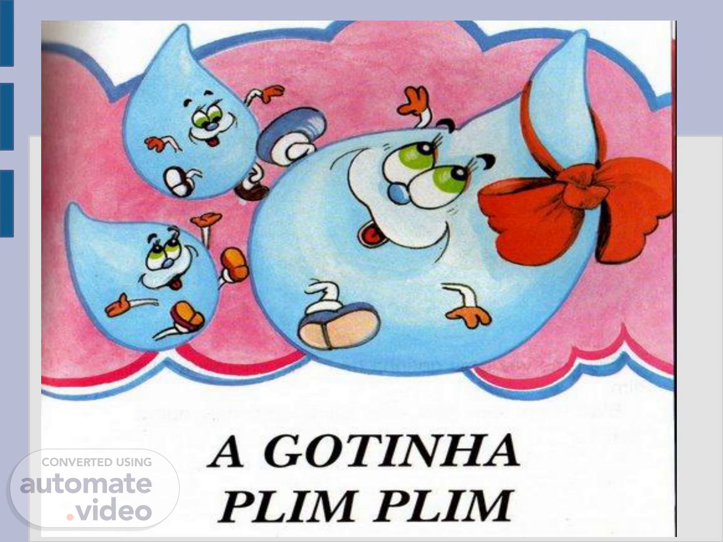 Era uma vez uma gotinha de chuva chamada Plim plirn. Ela vivia no céu, junto com outras gotinhas, numa nuvem. Como era gostoso viver ali! Certo dia, o tempo mudou de repente. IJm vento muito frio soprou forte e as gotinhas comegaram a cair em forma de chuva..