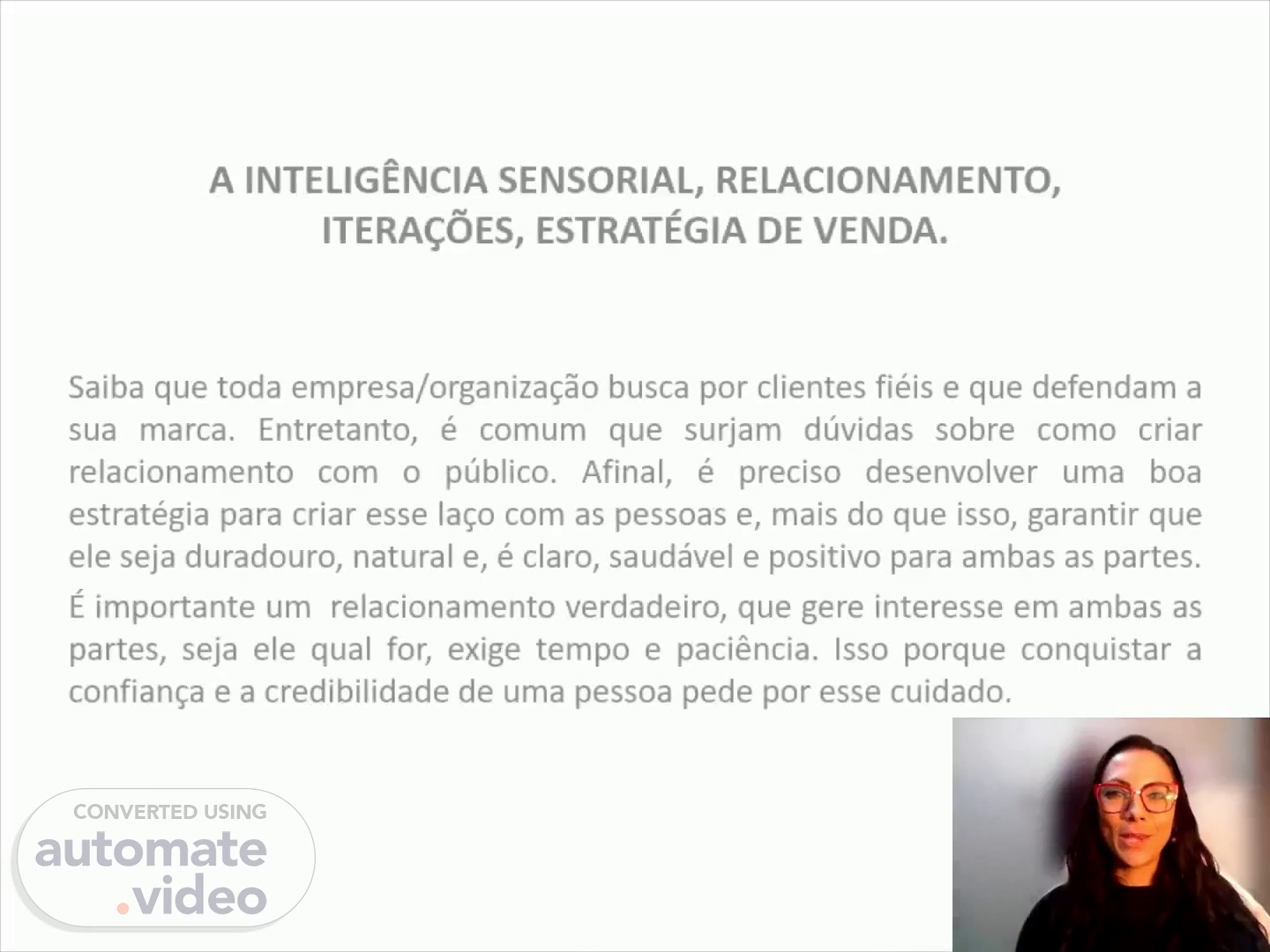A INTELIGÊNCIA SENSORIAL, RELACIONAMENTO, ITERAÇÕES, ESTRATÉGIA DE VENDA. Saiba que toda empresa/organização busca por clientes fiéis e que defendam a sua marca. Entretanto, é comum que surjam dúvidas sobre como criar relacionamento com o público. Afinal, é preciso desenvolver uma boa estratégia para criar esse laço com as pessoas e, mais do que isso, garantir que ele seja duradouro, natural e, é claro, saudável e positivo para ambas as partes. É importante um relacionamento verdadeiro, que gere interesse em ambas as partes, seja ele qual for, exige tempo e paciência. Isso porque conquistar a confiança e a credibilidade de uma pessoa pede por esse cuidado..